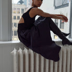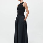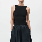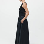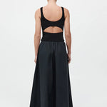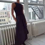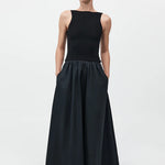 St Agni Bateau Cut Out Dress In Black. The Bateau Cut Out Dress offers a refined silhouette with subtle cut-out detailing. Featuring a fitted knit bodice that flows into a relaxed poplin skirt and maxi length. A versatile wardrobe essential, the Bateau Cut Out Dress transitions effortlessly from day to evening.