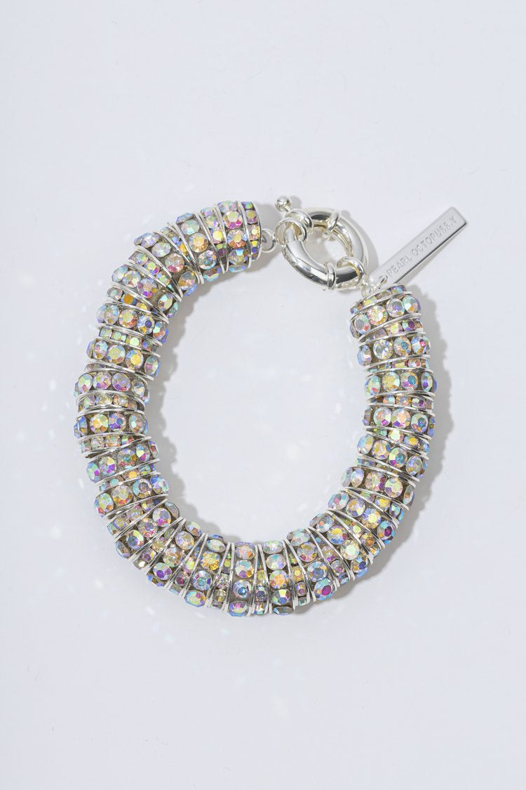 Pearl Octopuss.y Fat Diamond Bracelet in Silver. THE PEARL OCTOPUSS.Y FAT DIAMOND BRACELET is made with a mix of sparkling Silver Plated Rondelle Crystals. Silver Plated spring ring opener and Rolo Chain to regulate the length.