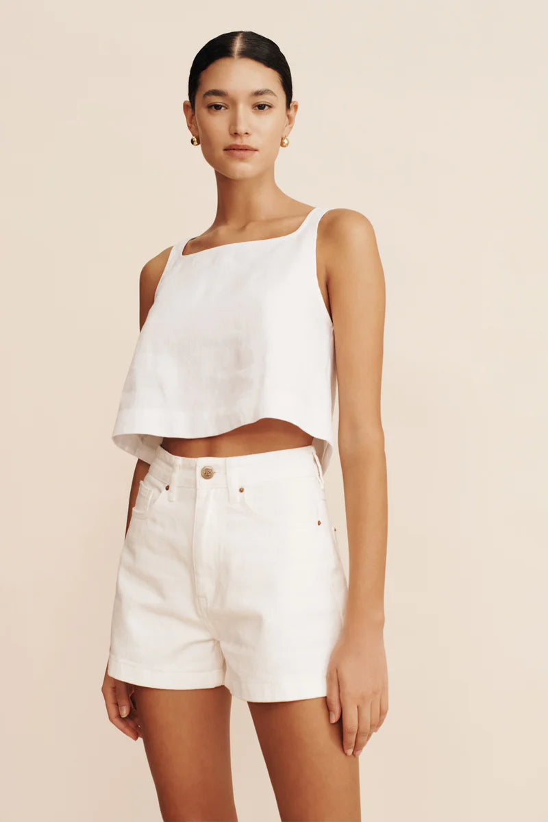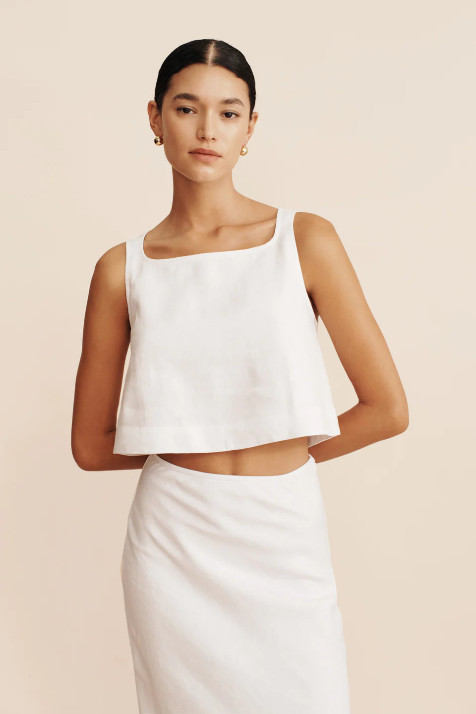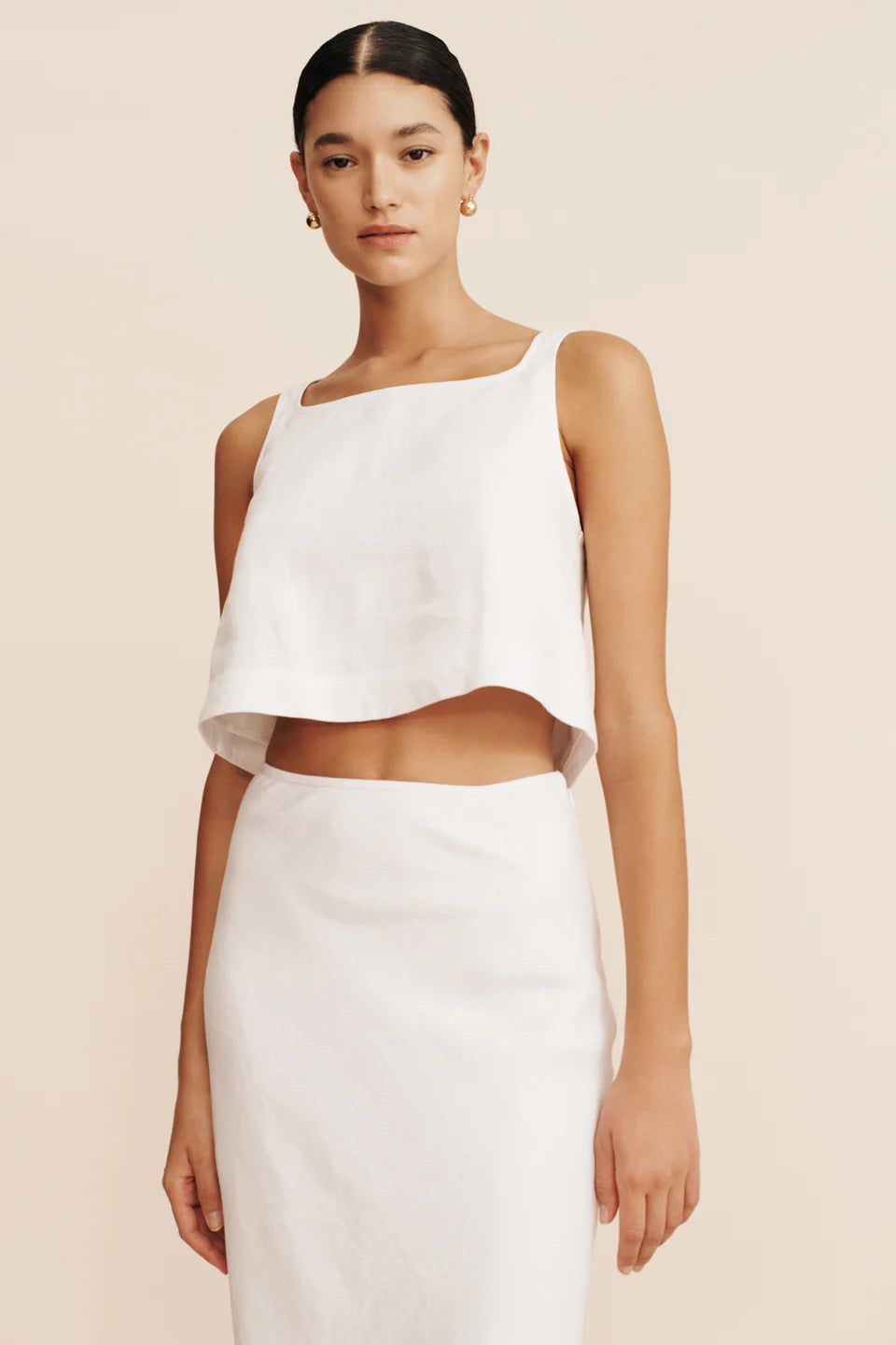 The Val Top features an elegant, high square neckline and has a boxy, cropped silhouette. Style yours as a set with the matching Aurora Skirt.
