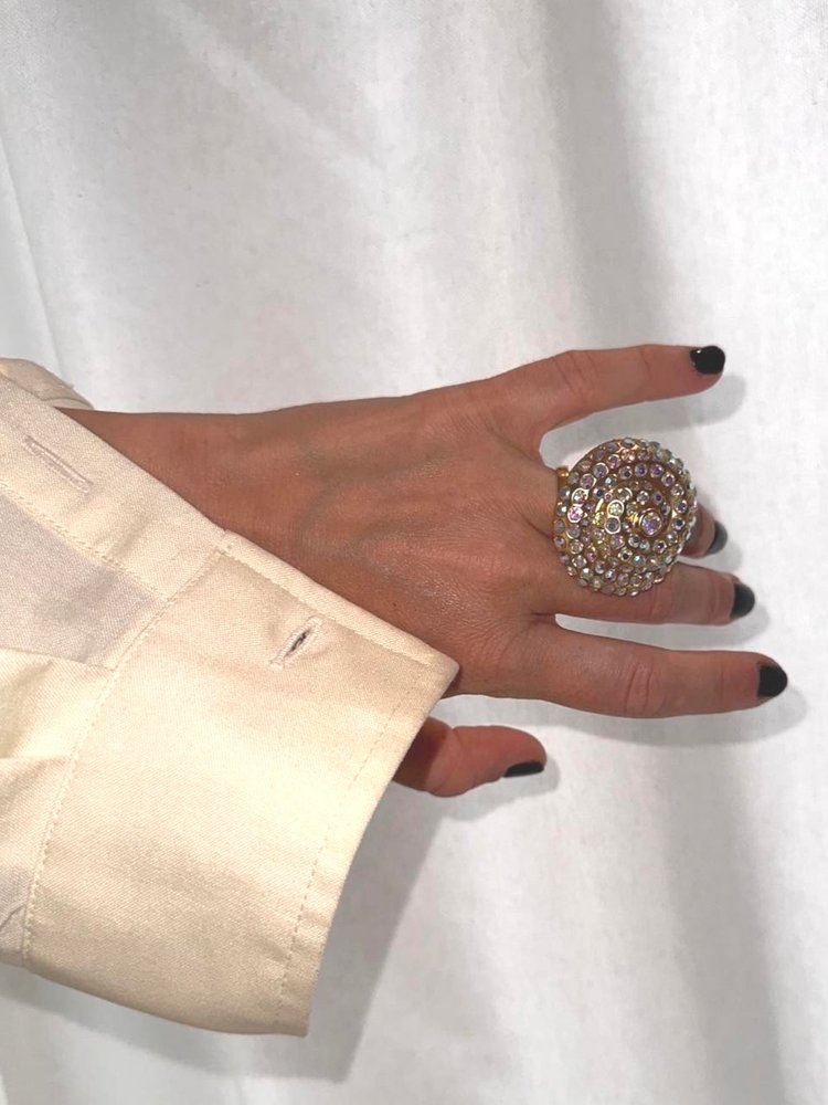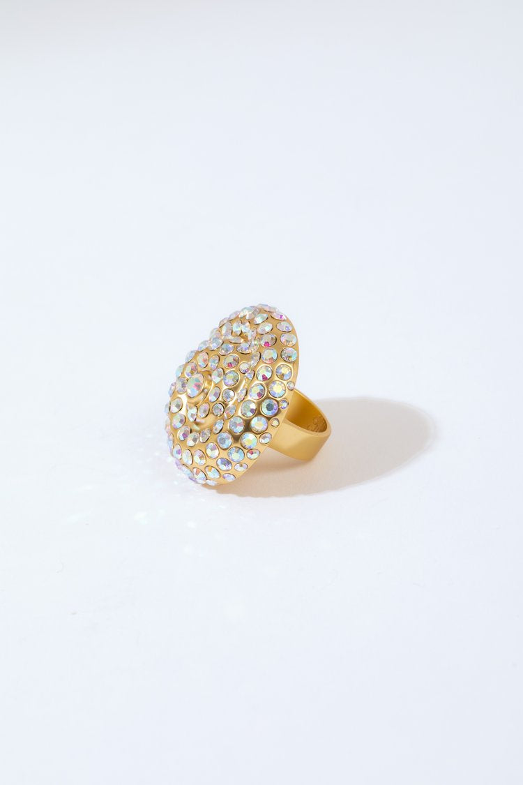 Pearl Octopuss.y Le Soleil Ring in Gold. THE PEARL OCTOPUSS.Y LE SOLEIL RING is a sparkling statement ring perfect to style up any outfit. Made of 14K Gold Plated Brass, with super sparkling glass crystals.