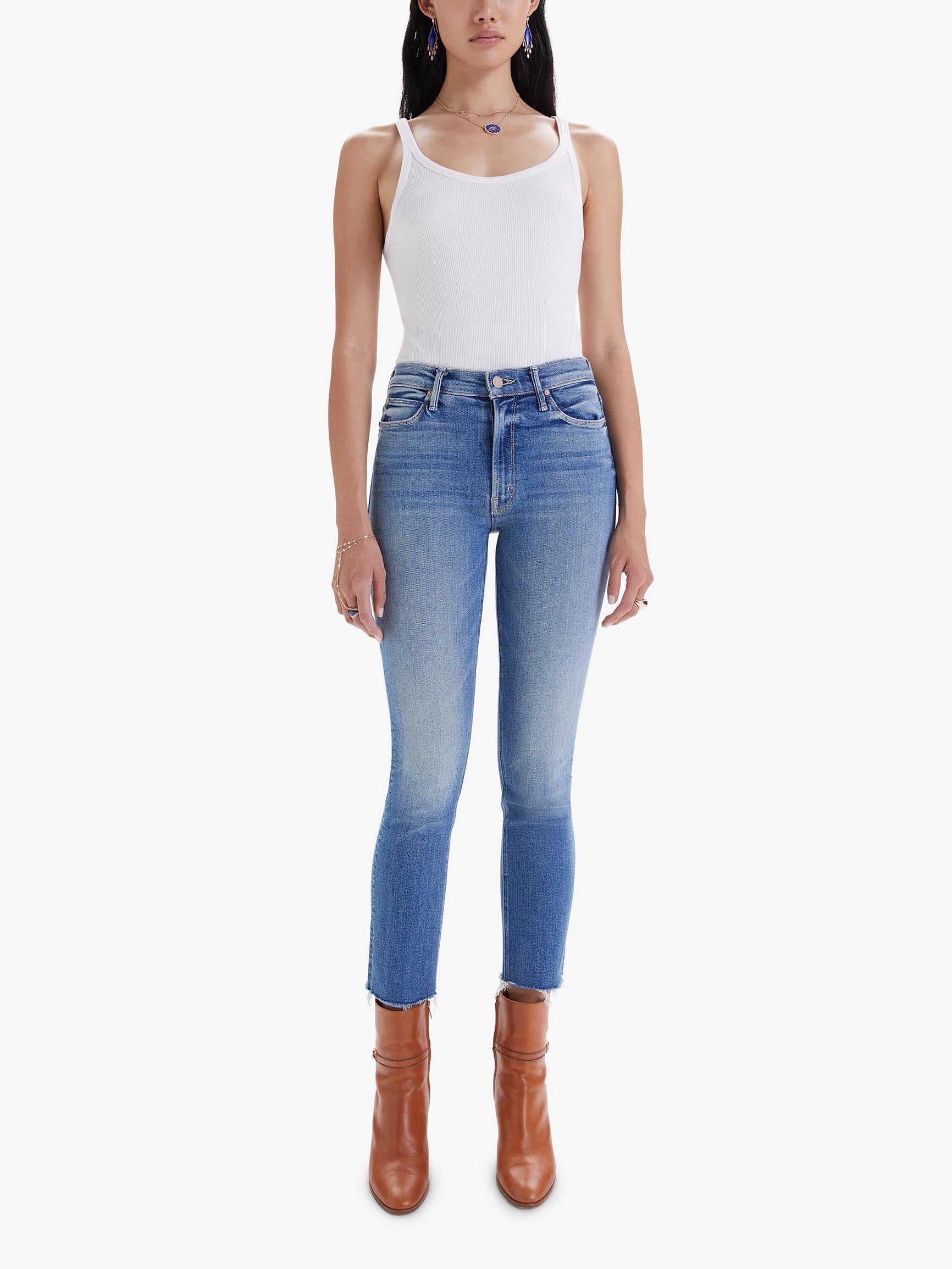 A real cliffhanger. Our most popular mid-rise straight leg with an ankle-length inseam and a frayed hem. Crafted from vintage-weight stretch denim in a retro-inspired wash.