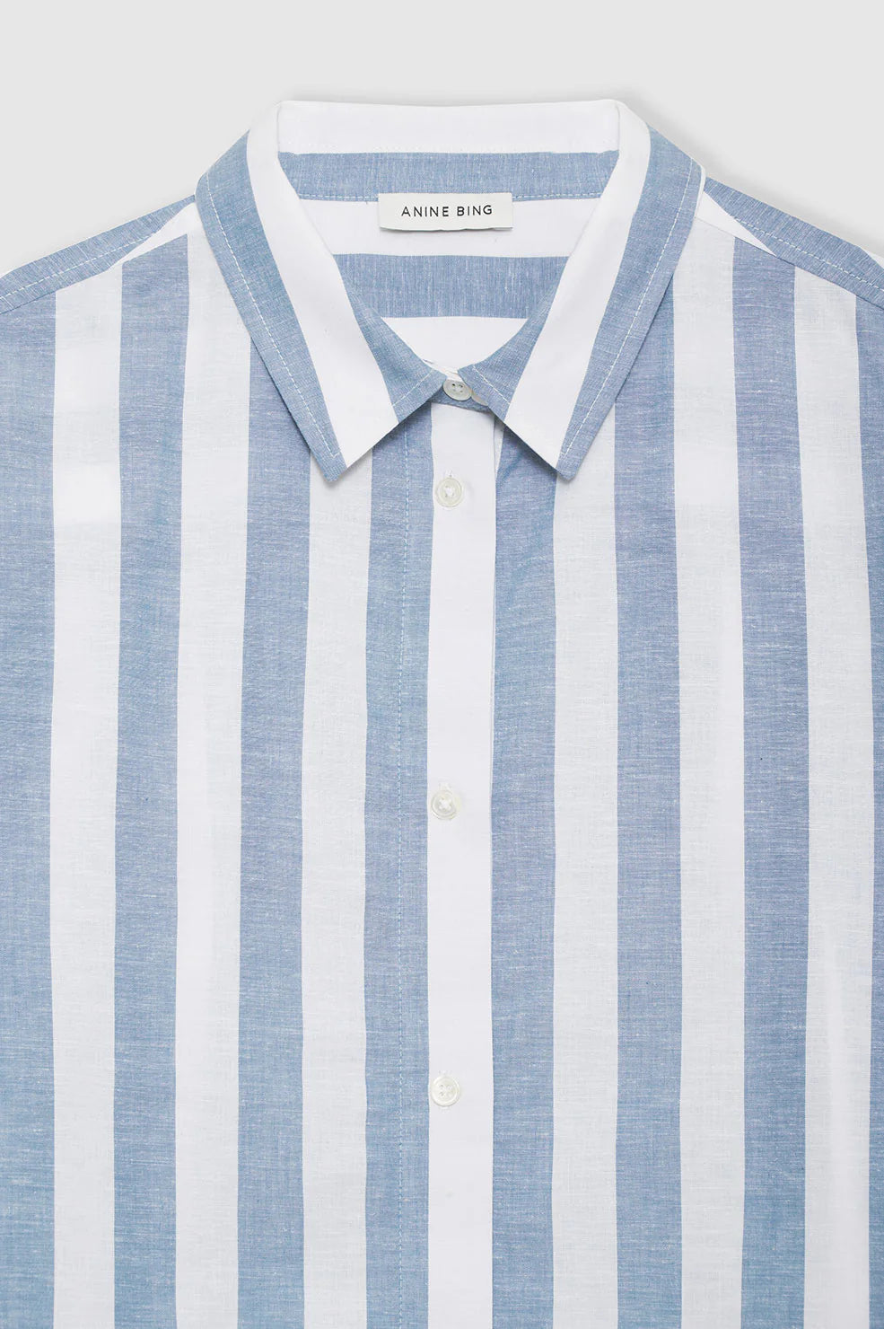 Anine Bing Plaza Shirt in White and Blue Stripe