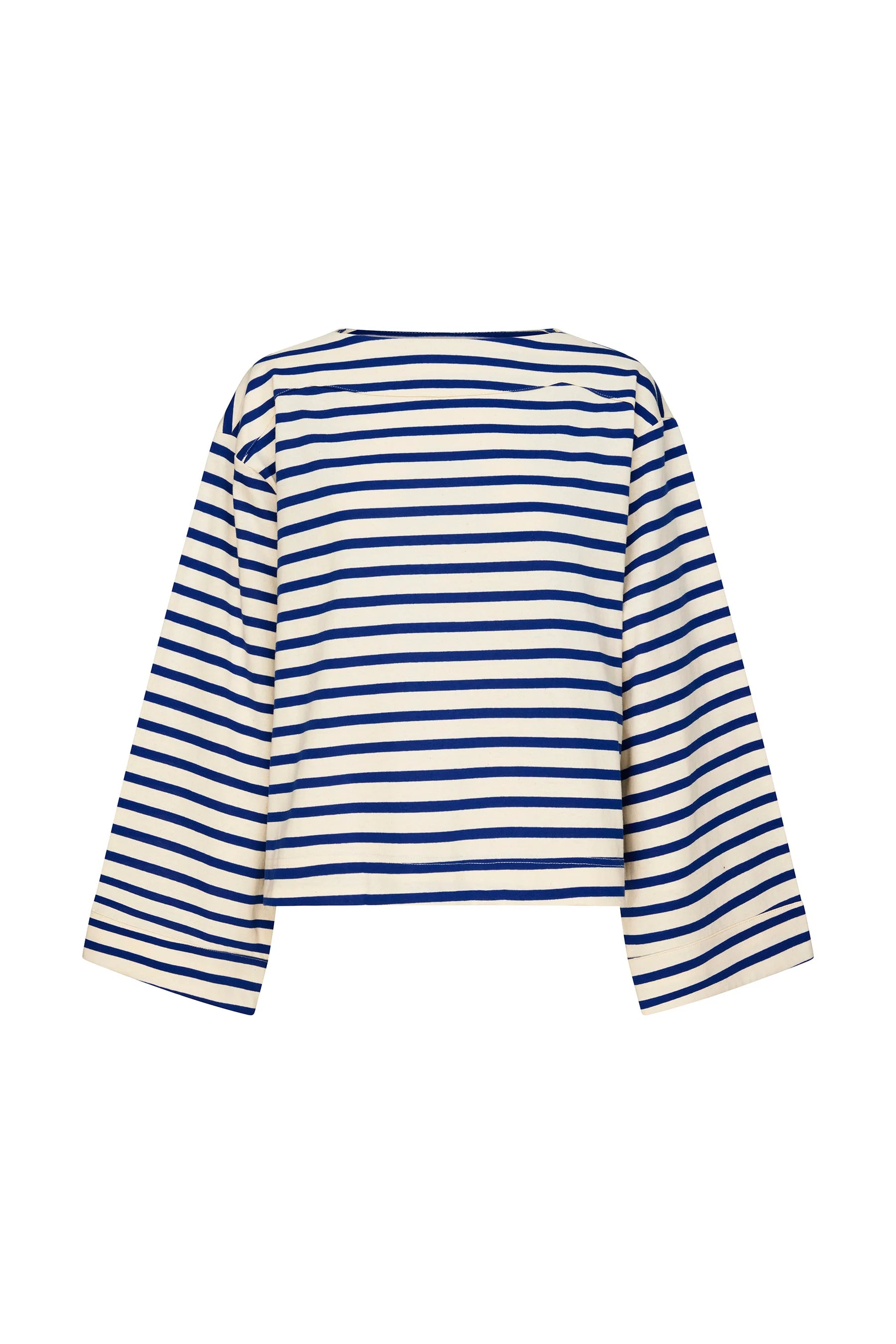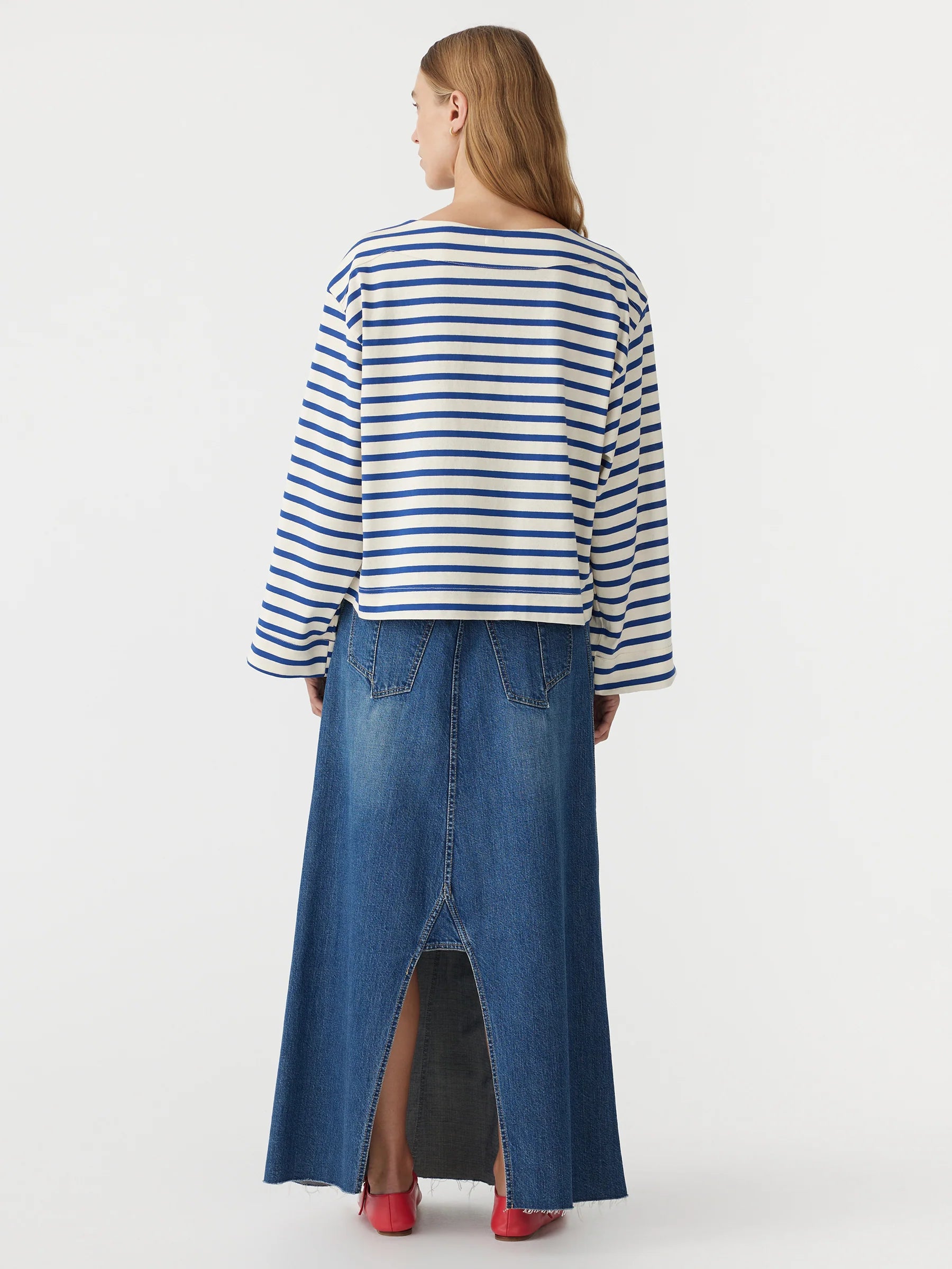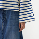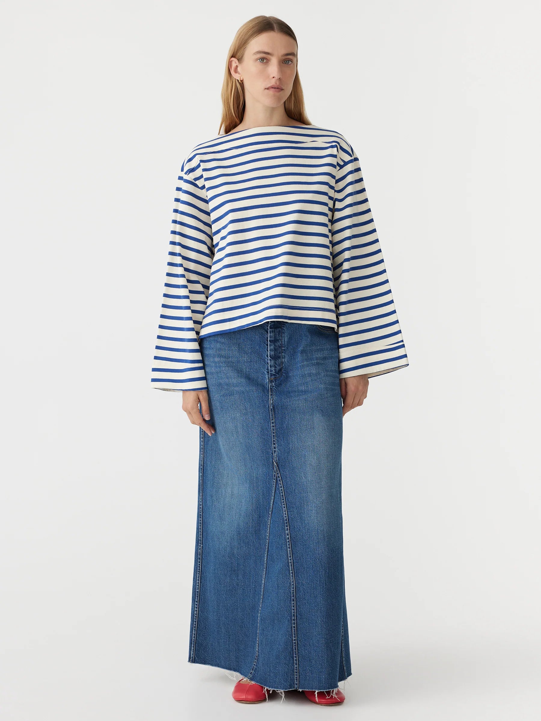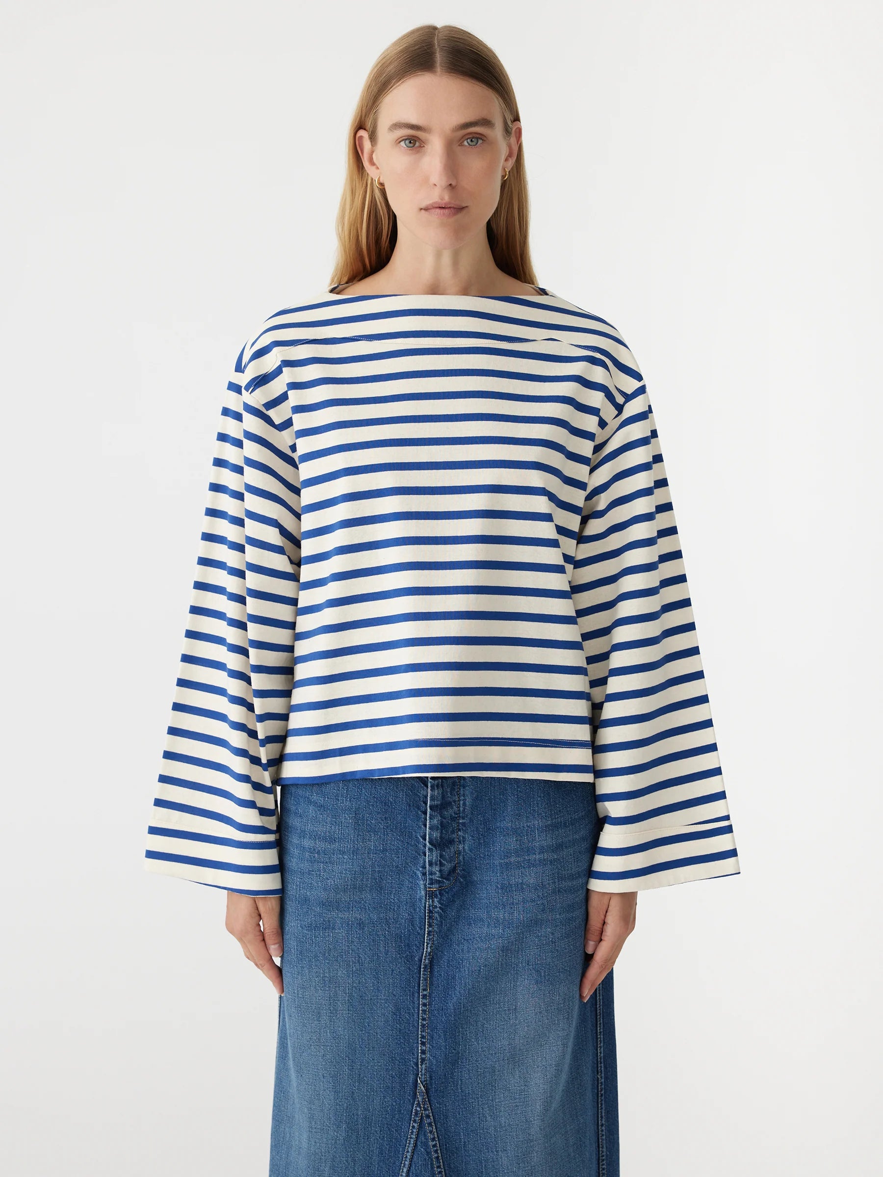 Stripe Boatneck Long Sleeve Tee | Natural and Cobalt