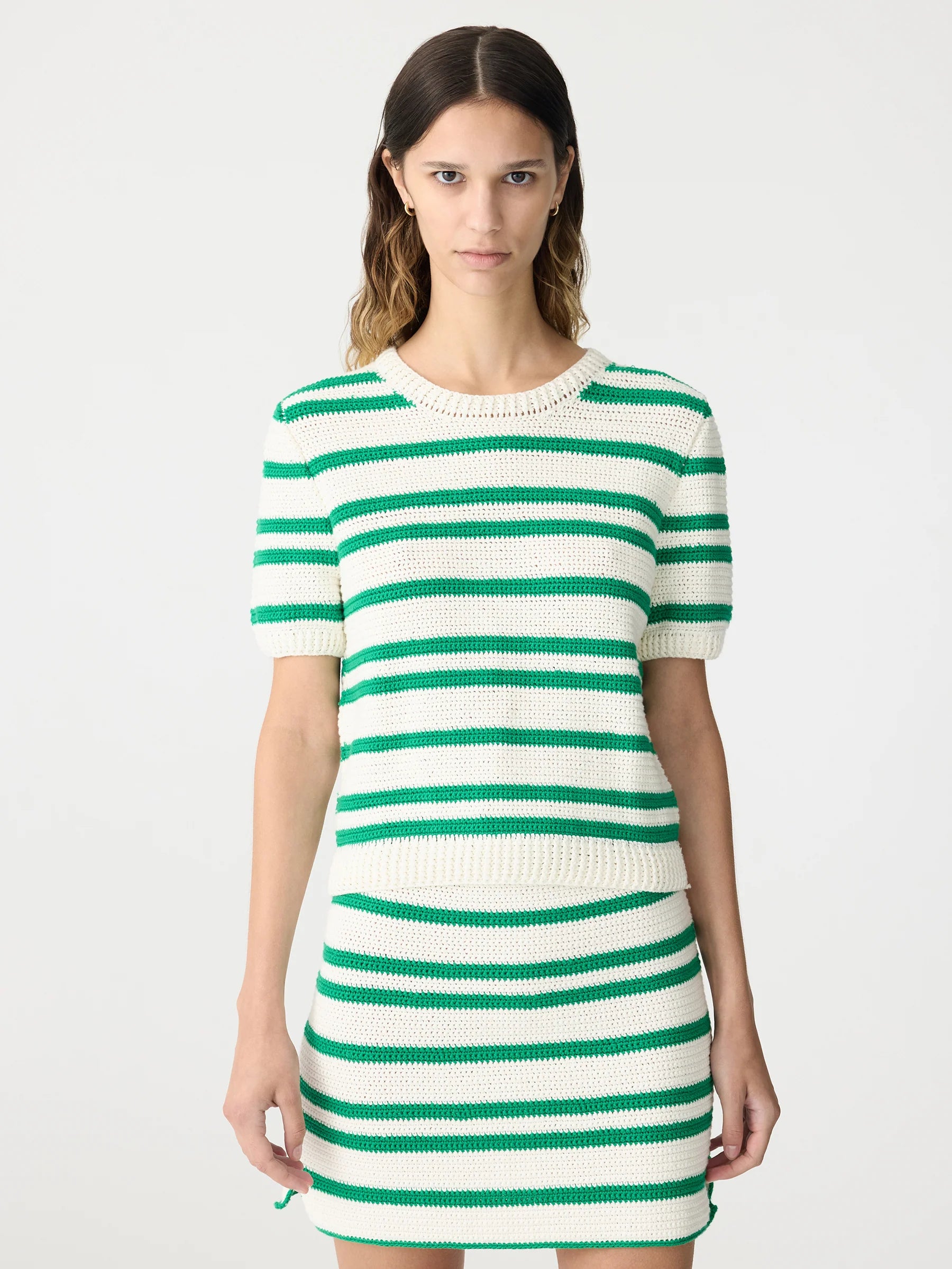 Bassike Crochet Stripe T-Shirt Knit in Aloe Vera and White