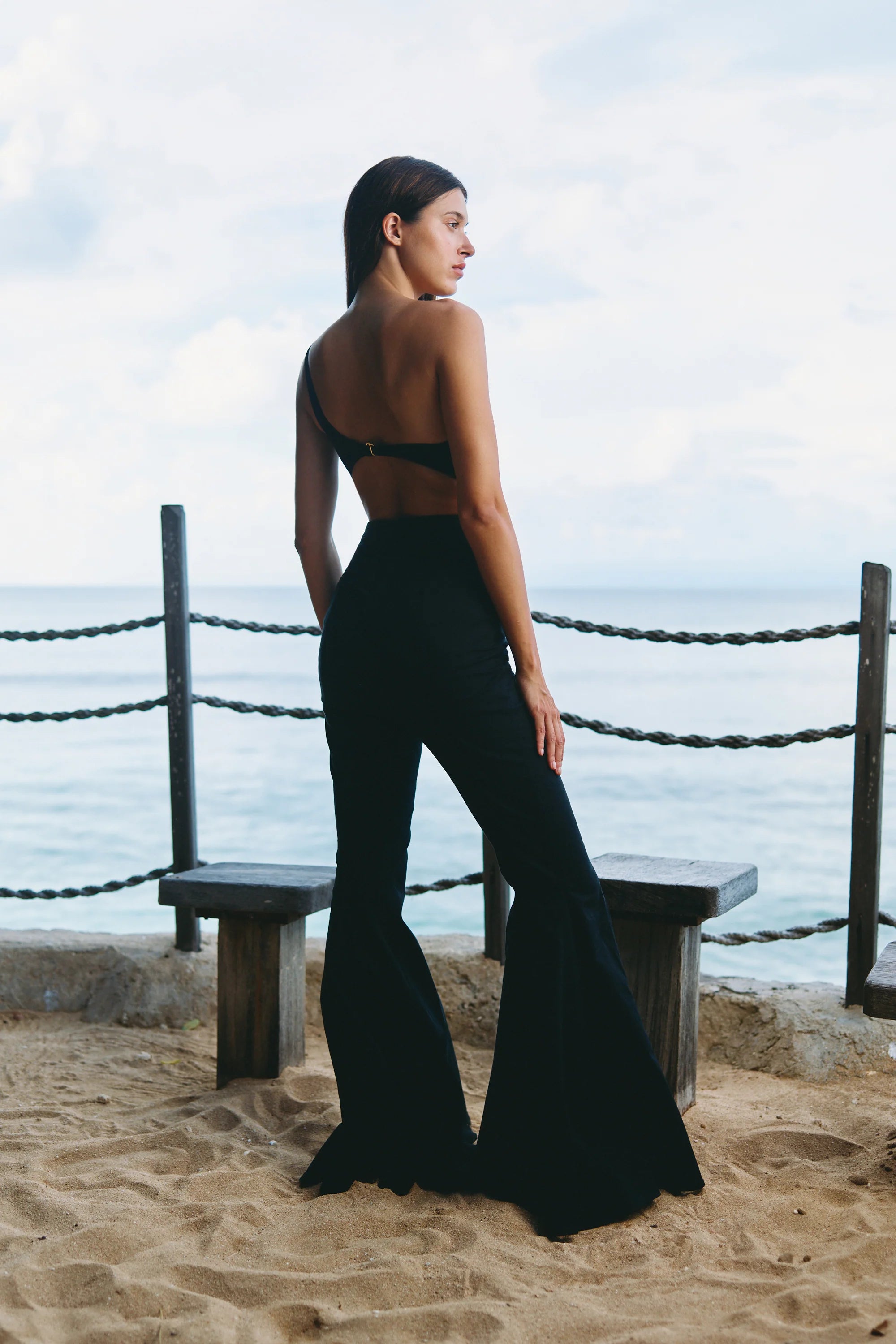 The Havana Pant is cut in a Stretch Tencel Cotton fabrication. Fitted through the hip to knee before flaring out at the hem through godet panel details.