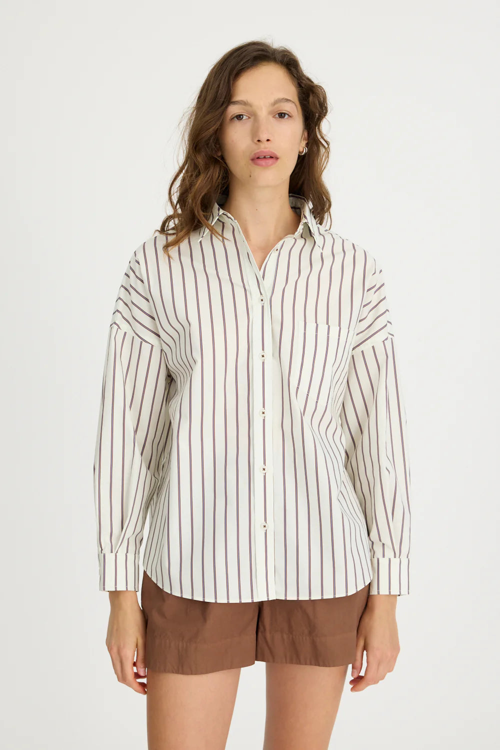 LMND Chiara Long Sleeve Shirt in Vanilla Stripes