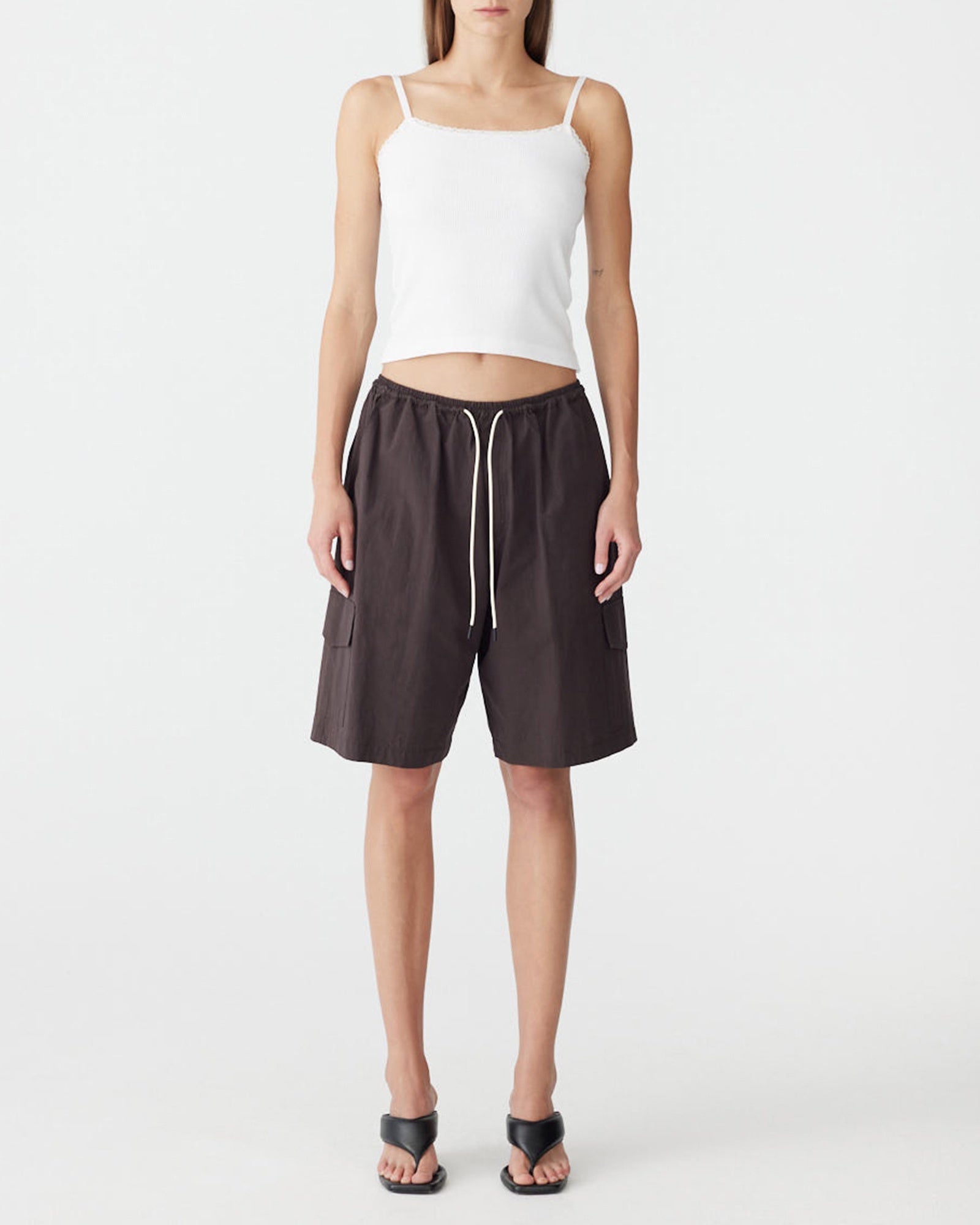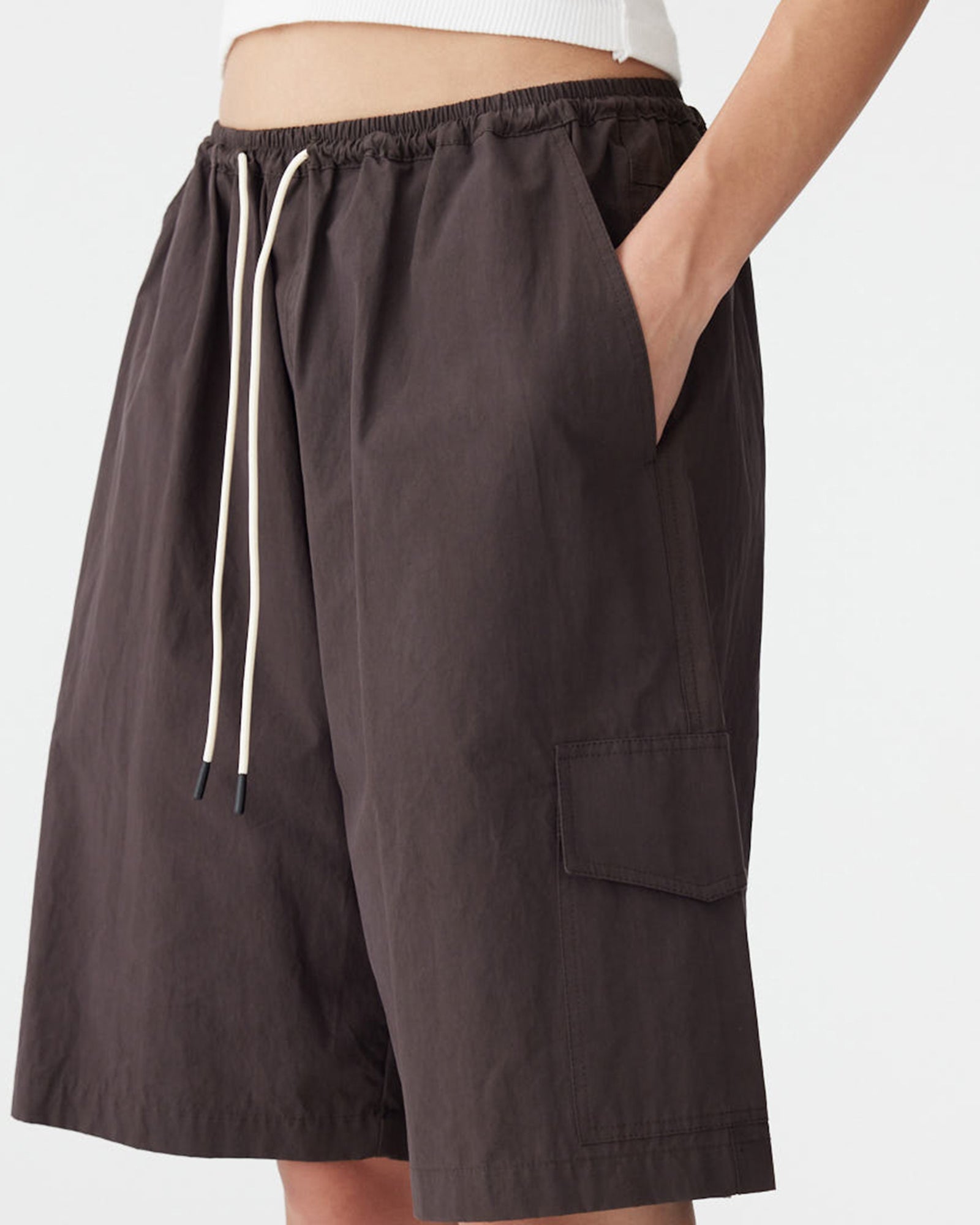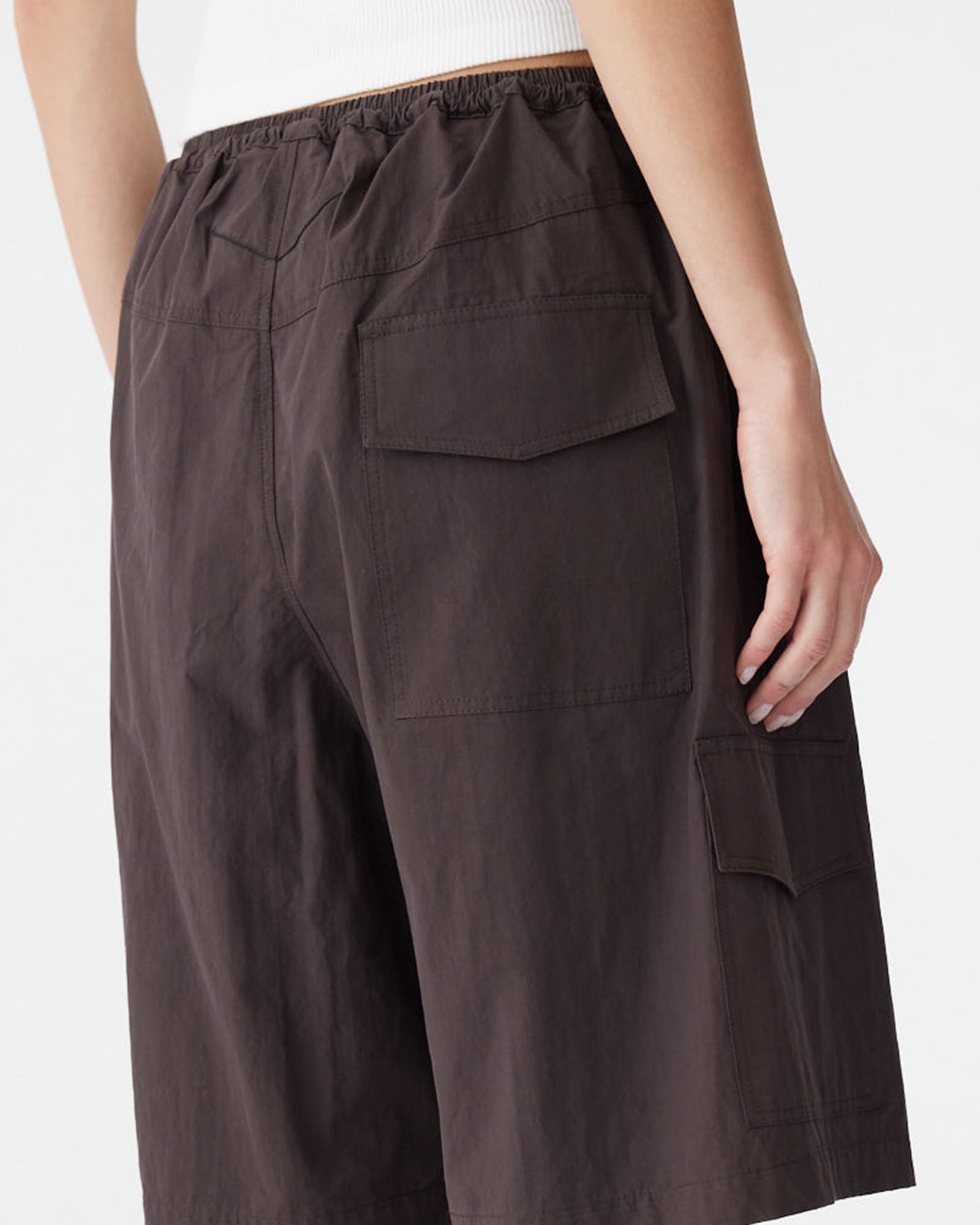 Bassike Crushed Cotton Cargo Short in Chocolate Brown