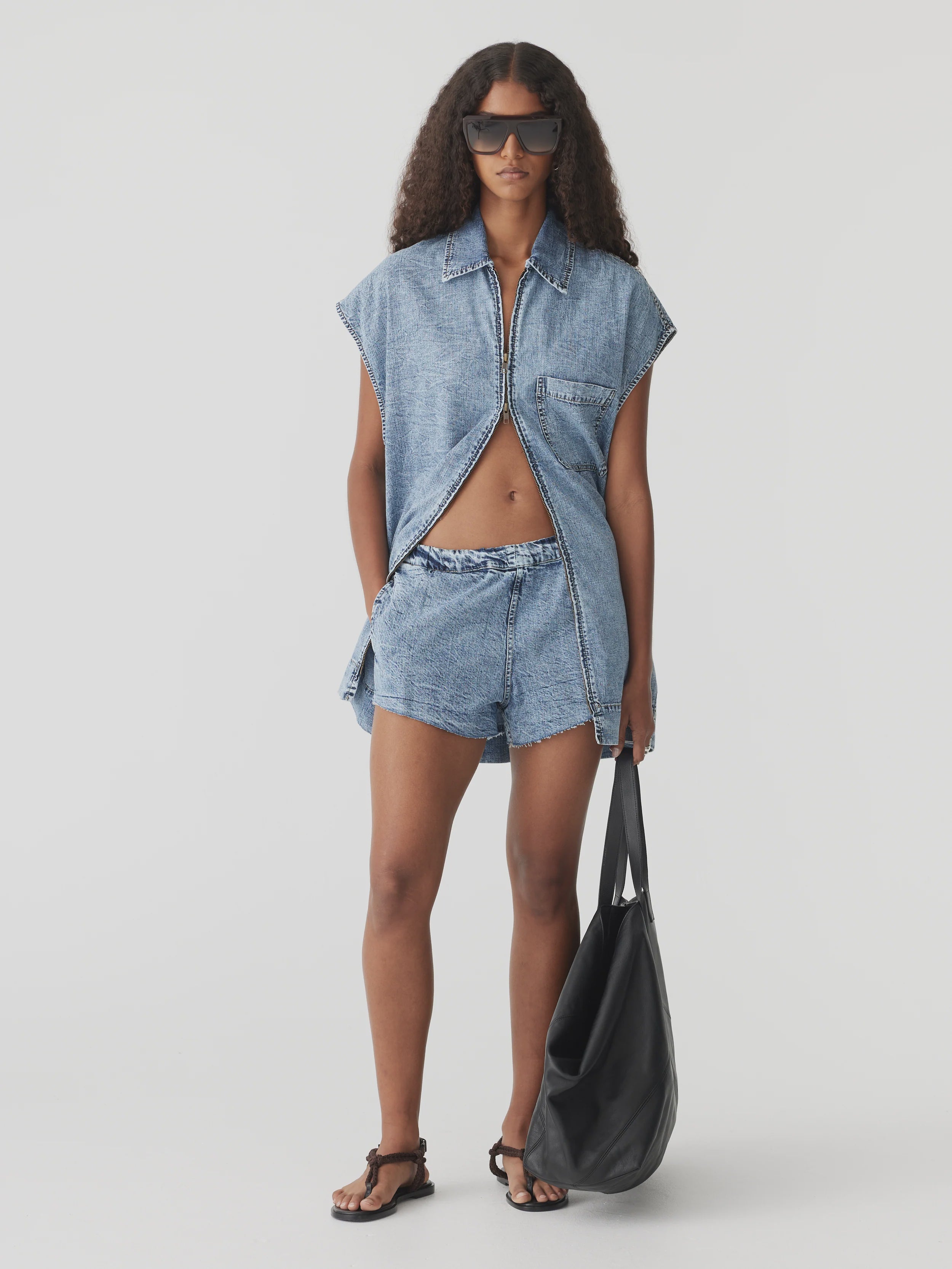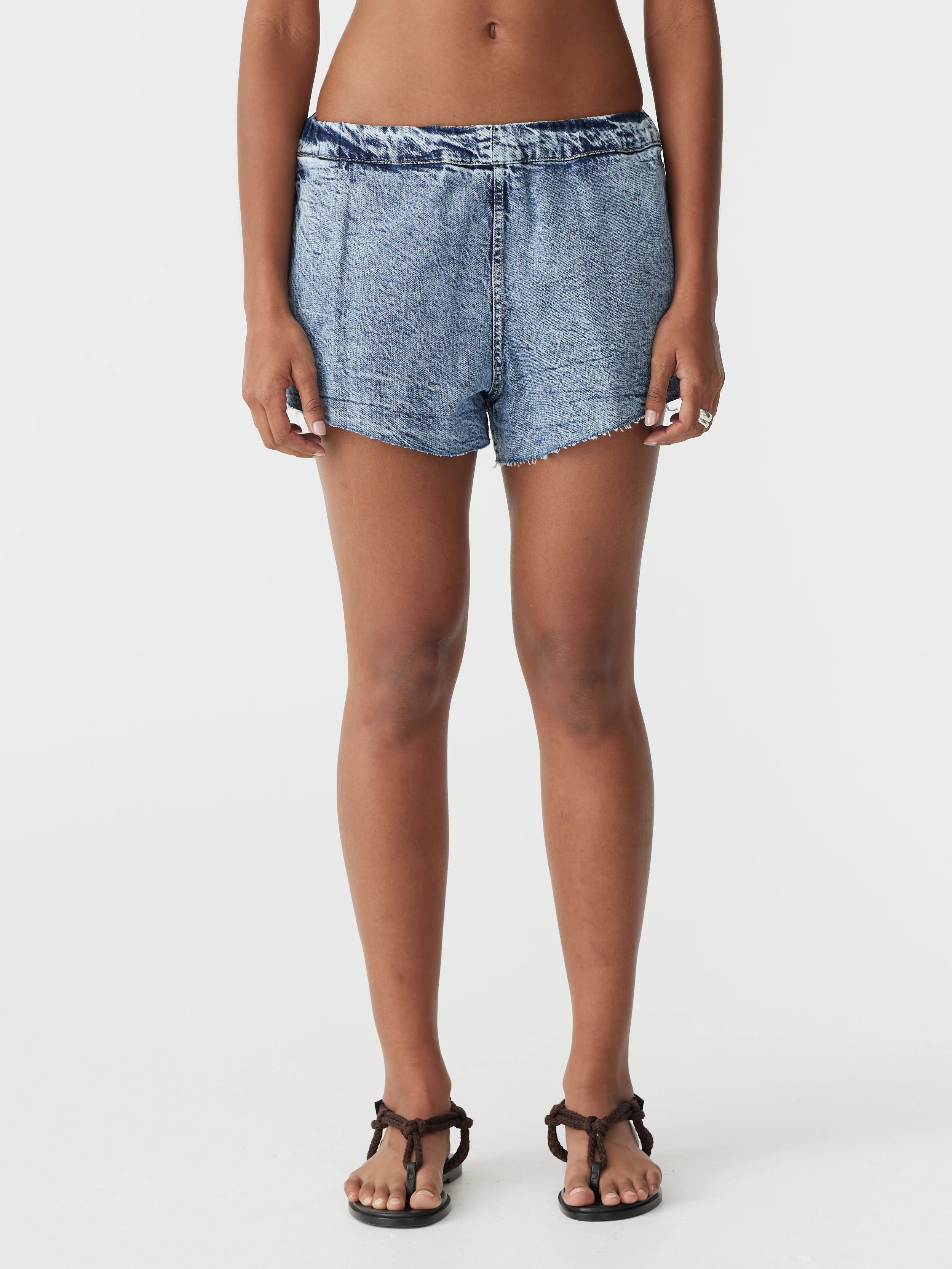 Bassike Denim Pull On Mini Short in Classic Stone Wash