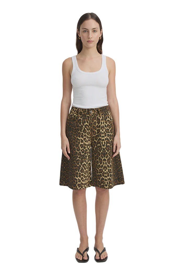 The denim shorts your wardrobe has been waiting for – the Velo Shorts in Leopard Print. With a relaxed, knee-length wide-leg fit, these shorts offer a fresh, fierce twist on the bestselling Blanca silhouette, delivering the perfect balance of comfort and cool. Ideal for everything from running errands to weekend getaways, they move with you, offering both style and ease. The bold leopard print adds an edge, while the classic fit keeps it versatile. Whether you dress them up with an oversized shirt or keep it casual with a simple tee, the Velo Shorts in Leopard Print are the ultimate statement piece for the season.