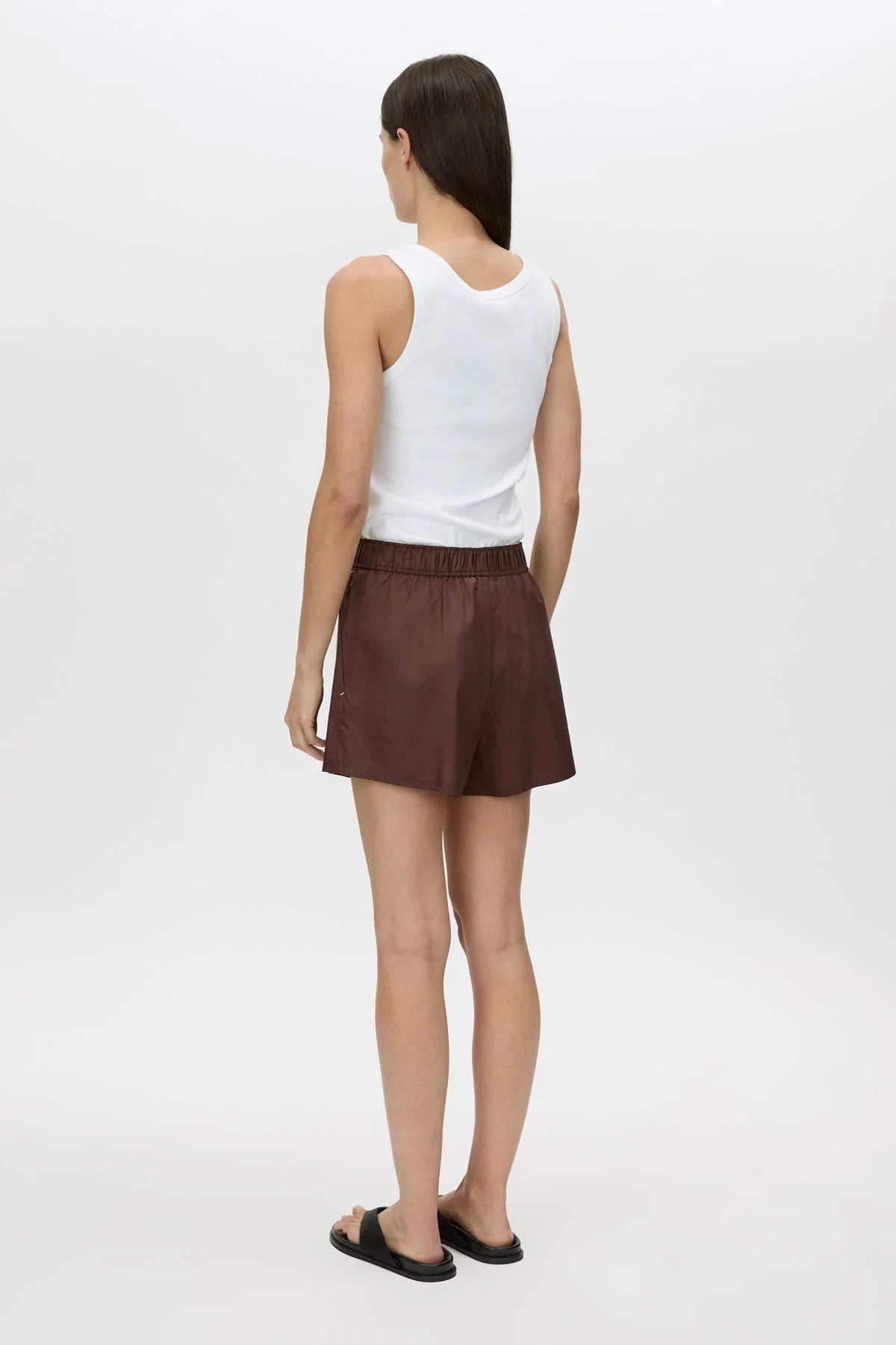 Camilla and Marc Sierra Short in Chocolate. The Sierra Short is crafted from Australian Cotton in a relaxed silhouette. This short features an elasticated encased waistband and is fully lined with slant pockets.