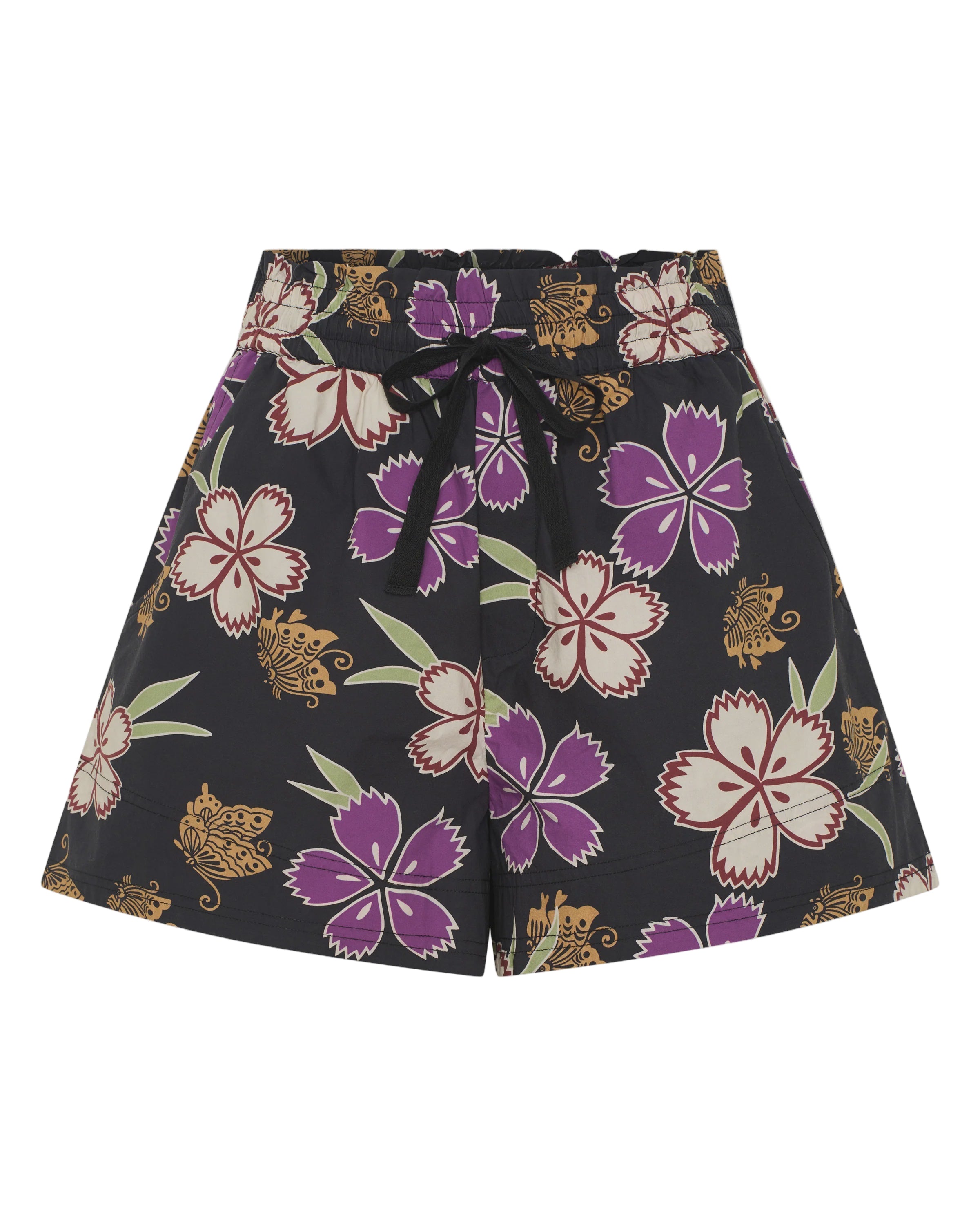 Ilio Nema Remus Shorts in Hibiscus Print. The Remus Shorts are a breezy, versatile essential crafted from a vibrant hibiscus printed cotton poplin. Designed with a comfortable elastic waistband, side pockets and a relaxed fit, these shorts offer effortless style and all-day comfort. Lightweight and breathable, they’re perfect for warm days, pairing beautifully with crop tops or looser blouses for an easy, polished look. Pair it with the Antiope bubble top for a cute tropical outfit.