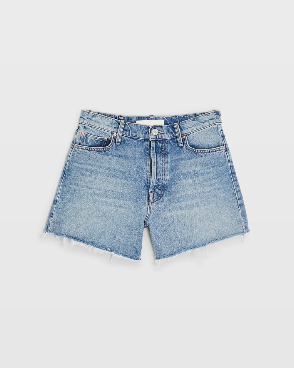 Get the jump on it. High-waisted denim shorts with a frayed hem and vintage-inspired fit. Cut from 100% cotton, Leap At The Chance is a light-blue wash with whiskering and fading throughout.