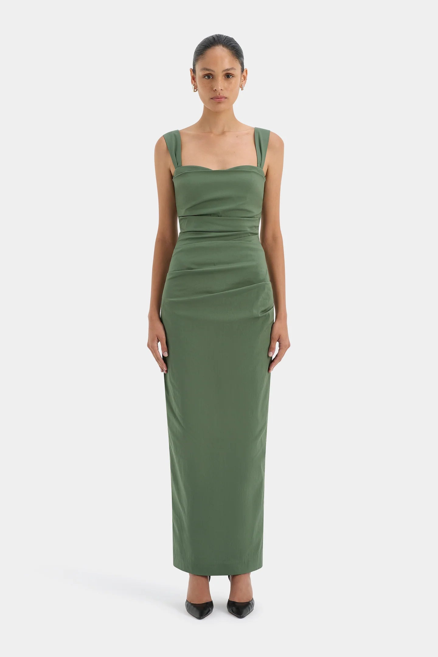 Sir Florent Balconette Gown in Forest Green. The Florent Balconette Gown in Forest Green is designed for any special occasion. It features wide straps, an underwire bustier and tucks through the body for a softly gathered finish. Crafted from an Italian cotton fabrication with slight stretch to ensure a flattering fit.