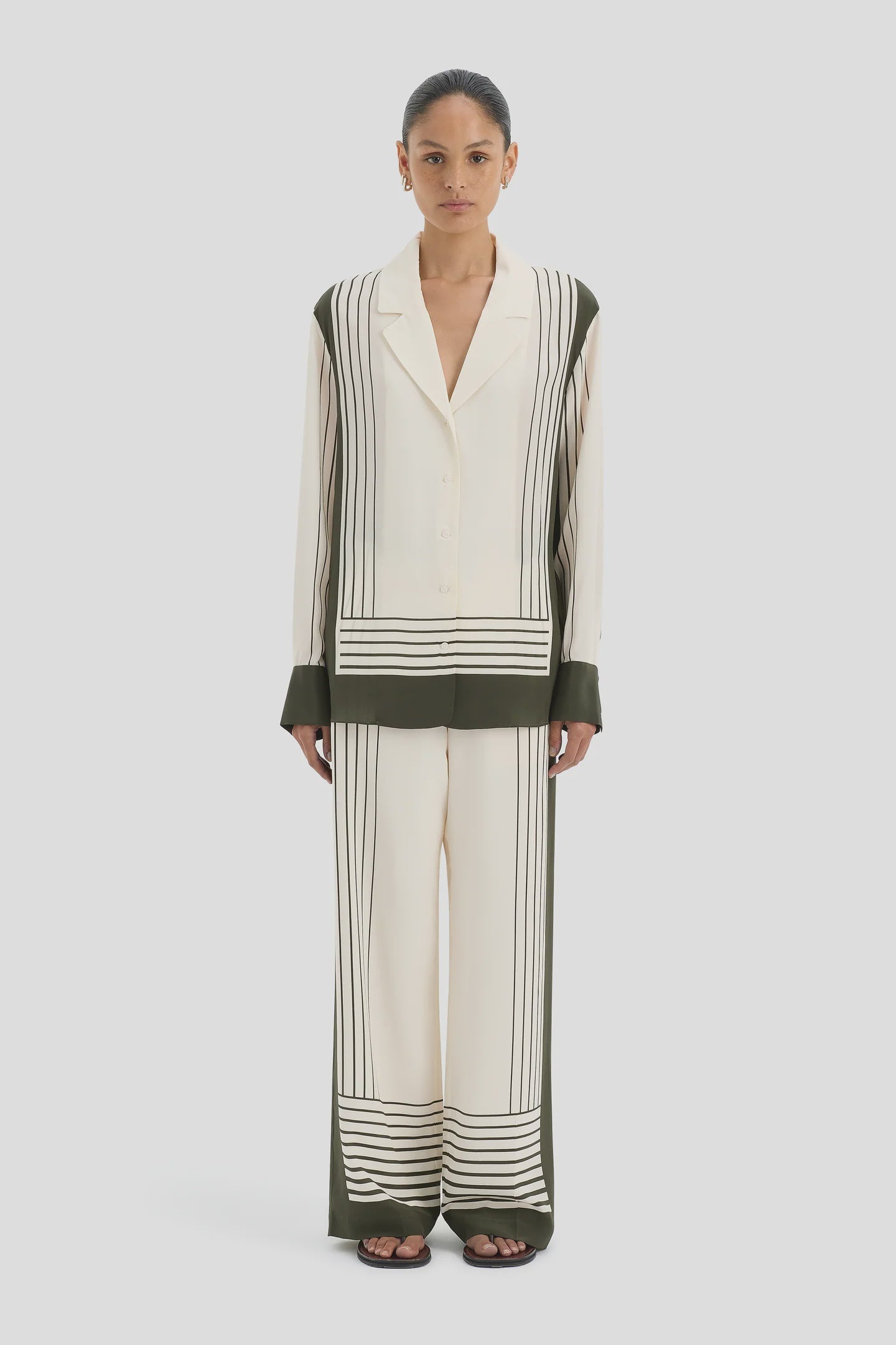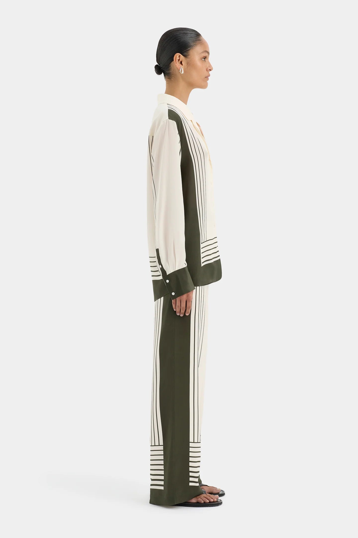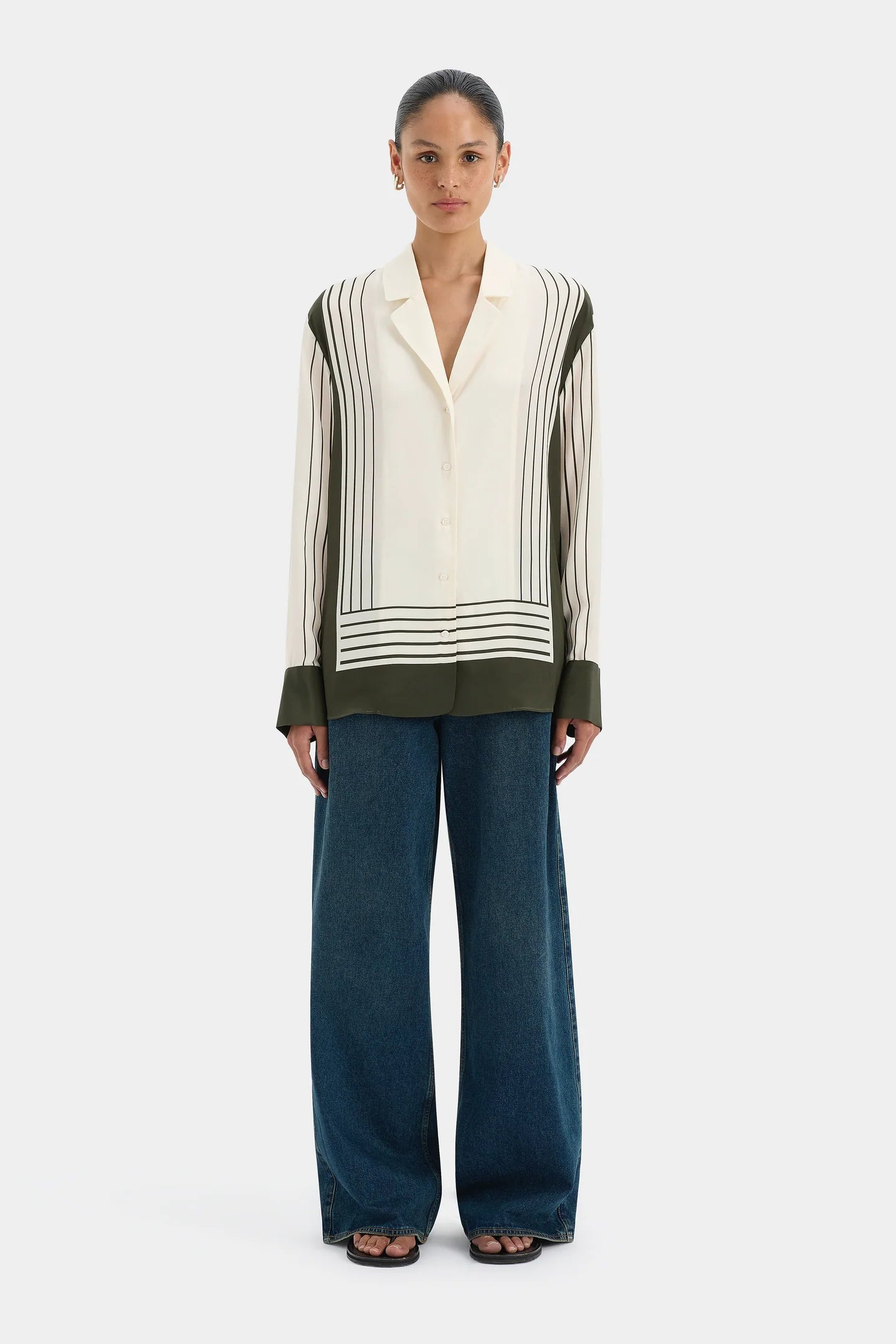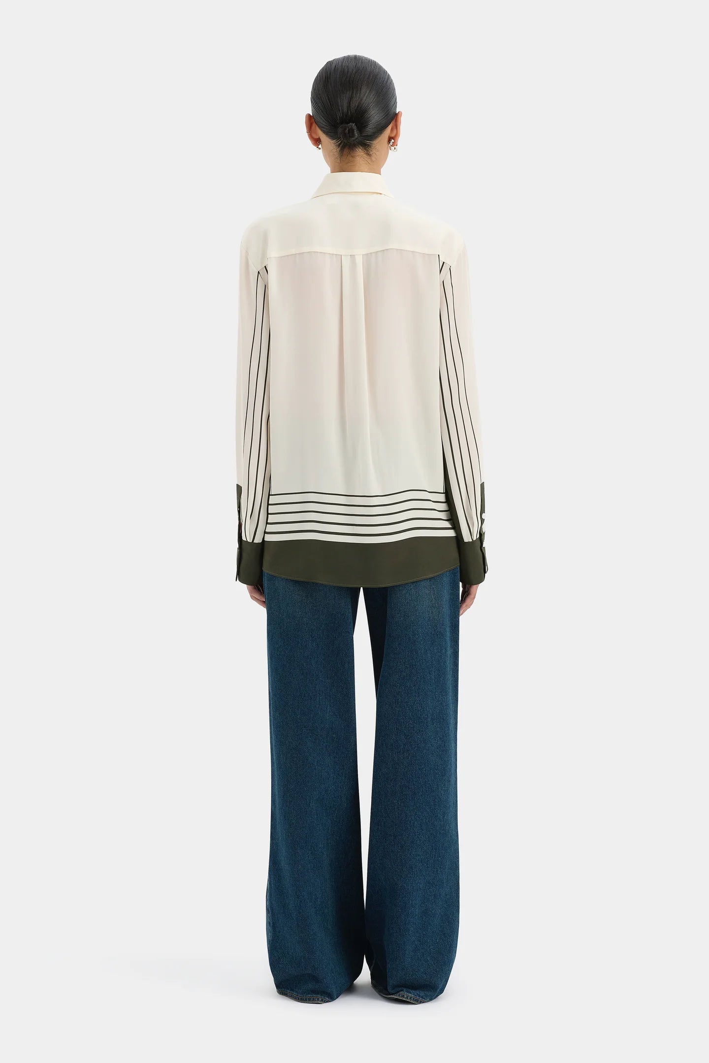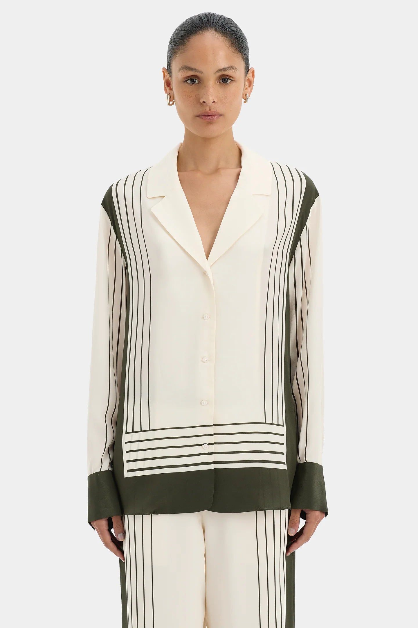 Sir Leilana Shirt in Garden Stripe. The Leilana Shirt is a relaxed long sleeve shirt crafted from silk crepe de chine, in our exclusive in an exclusive Garden Stripe print. Featuring an open collar design and a button front with SIR. logo buttons with a pearl finish.