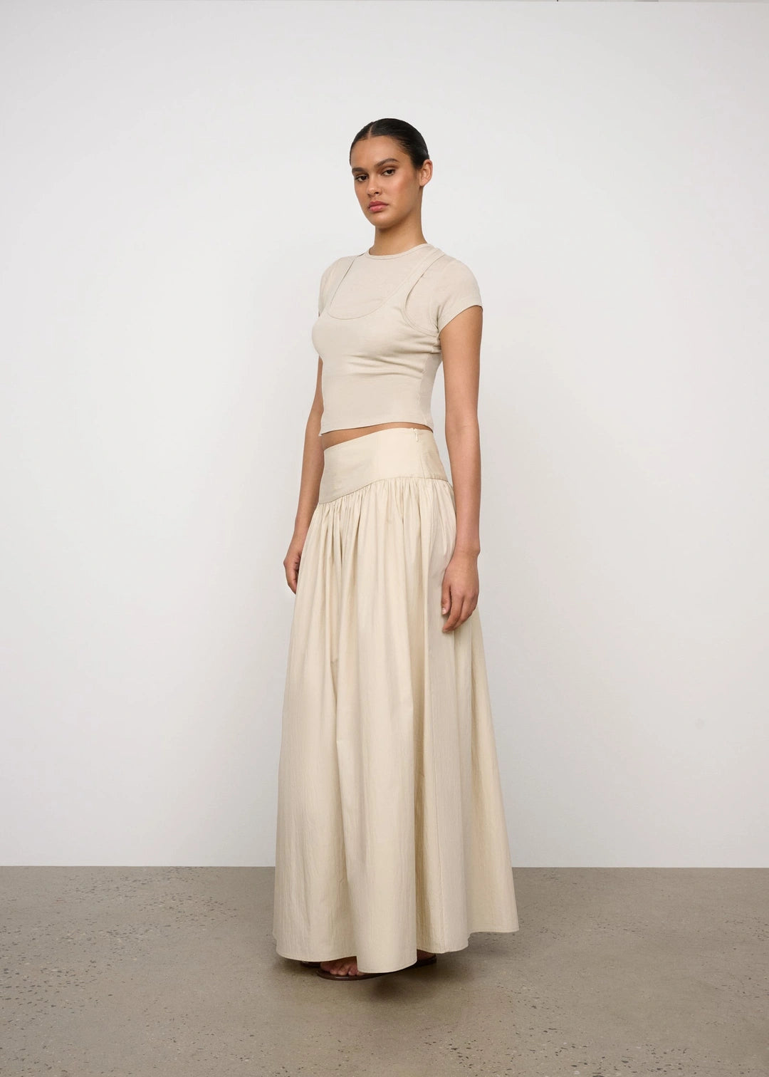 One Of Others Rowe Skirt in Calico. An update on a classic a-line skirt with low waistline and feature yoke detail cut in our signature cotton nylon blend.