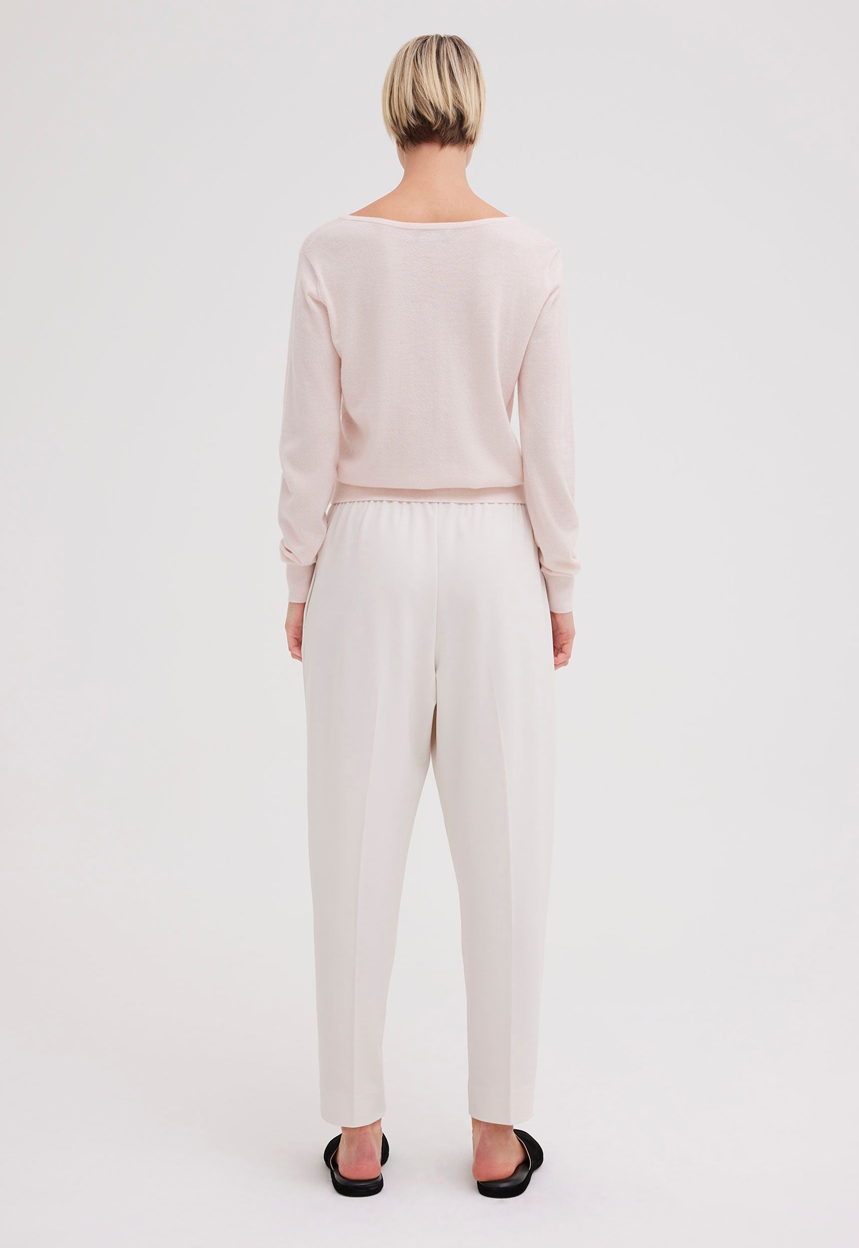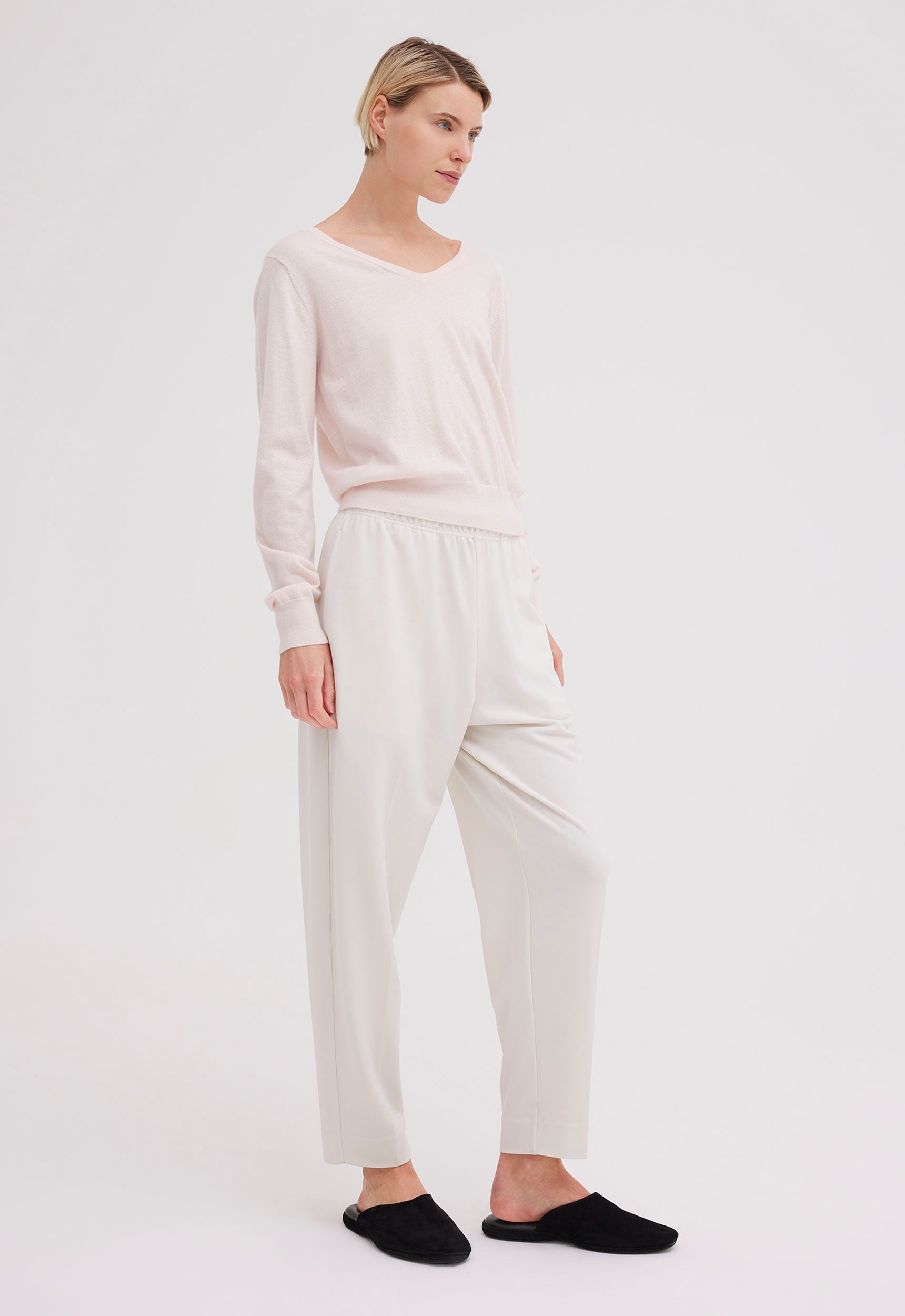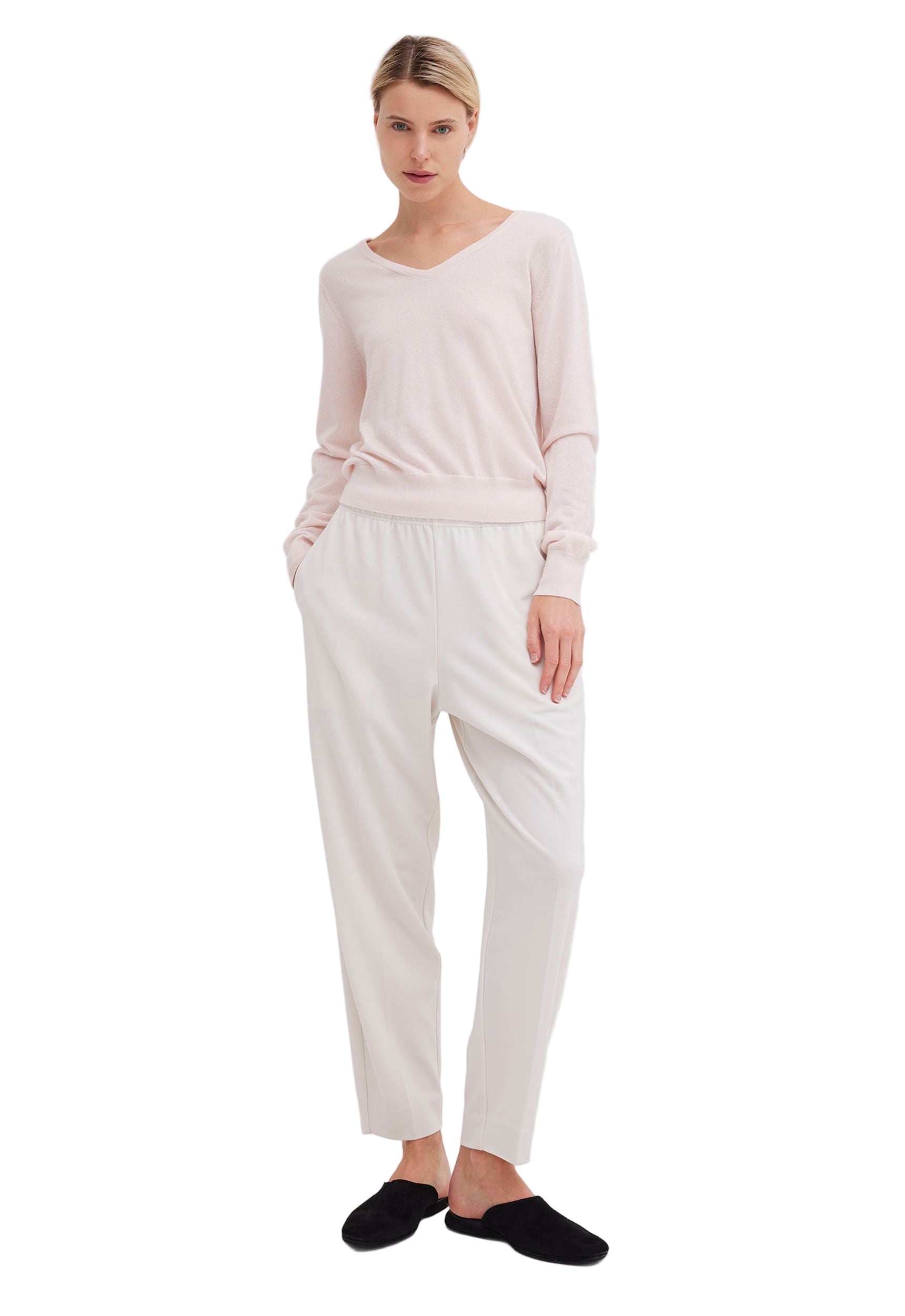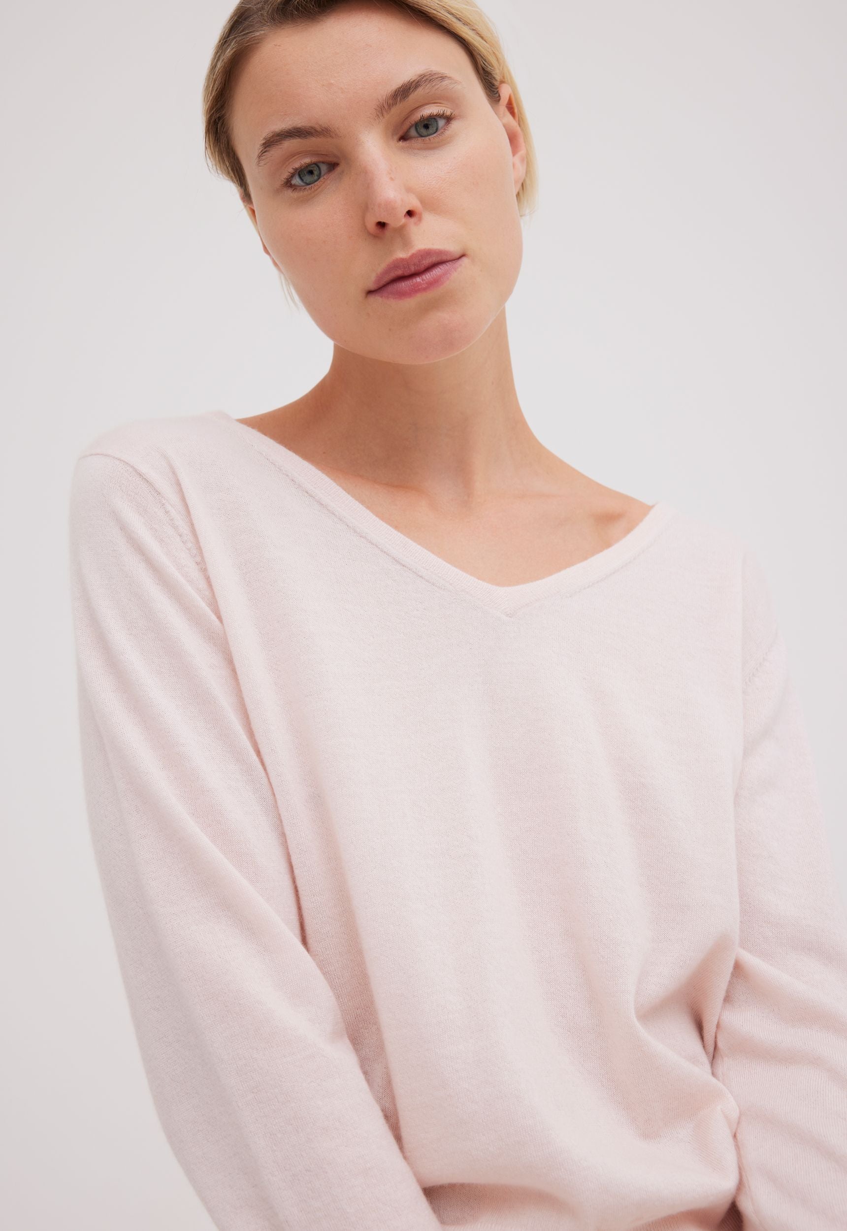 A beautifully made wardrobe staple. This v-neck cashmere sweater is the perfect transeasonal essential. With a petite, slightly cropped fit, long sleeves and the soft supple feel of pure cashmere this is a piece to transcend the seasons.