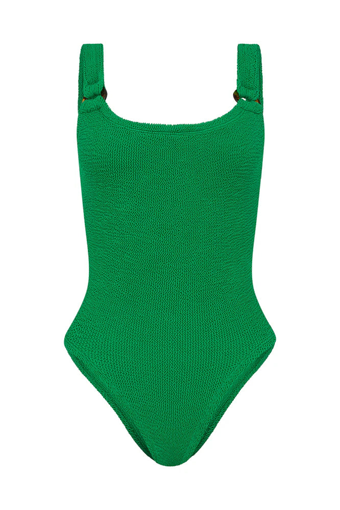 Some things never get old. Noughties tortoiseshell accents and a dipped neck silhouette and low scooped back – rule the beach in this iconic swimsuit.