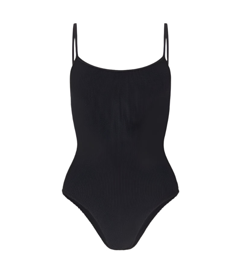 Hunza G Pamela Swim in Black. Our ingenious Original Crinkle™ fabric is designed to flex and sculpt to your body, which is why all Hunza G items are made in one size only.