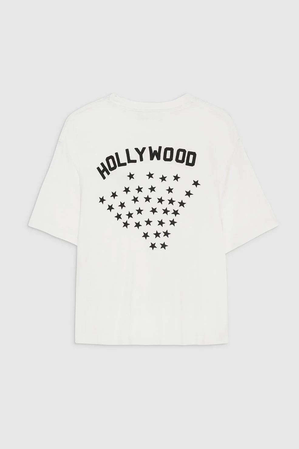 The Louis Tee Hollywood is crafted from a lightweight, ribbed viscose jersey fabrication in an ivory wash. This soft and slightly sheer crewneck tee features a flocked, vintage-inspired Hollywood graphic on the back.