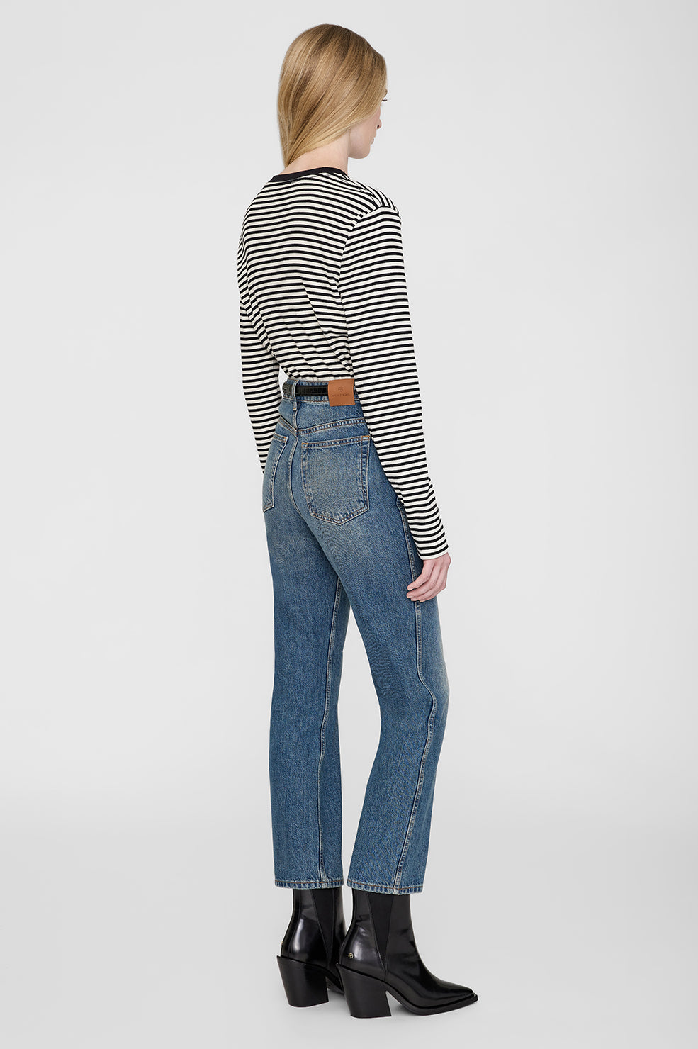 Anine Bing Alessia Long Sleeve Tee in Cream and Black Stripe