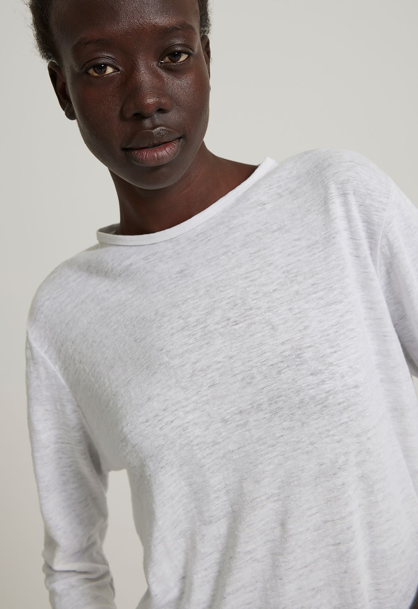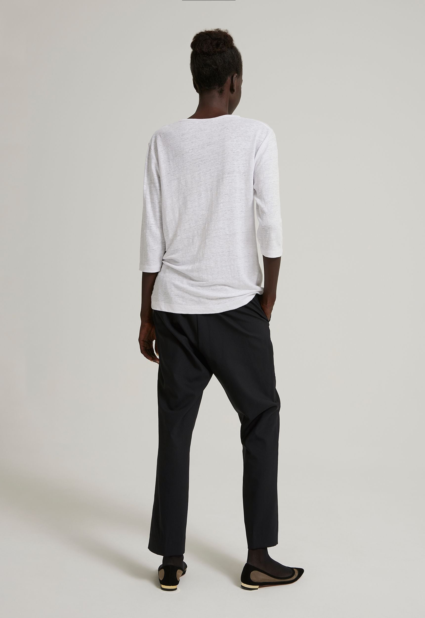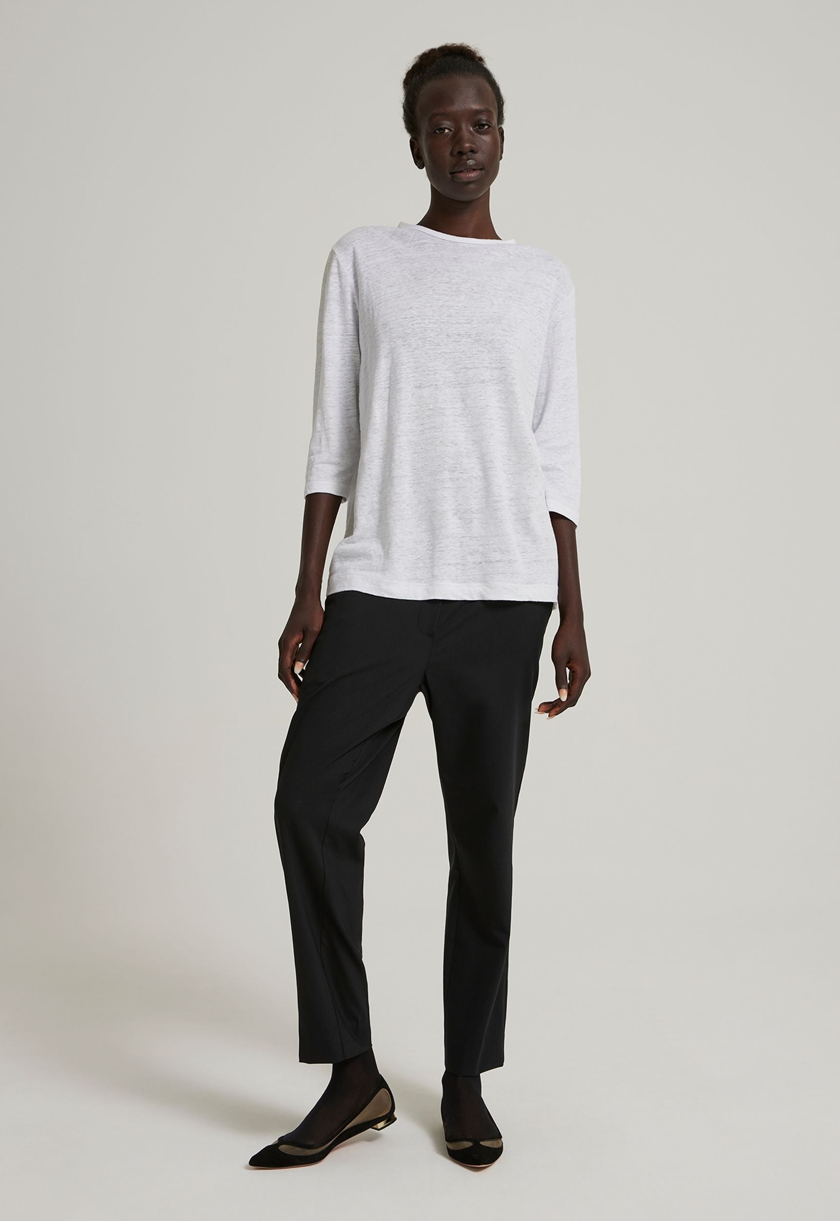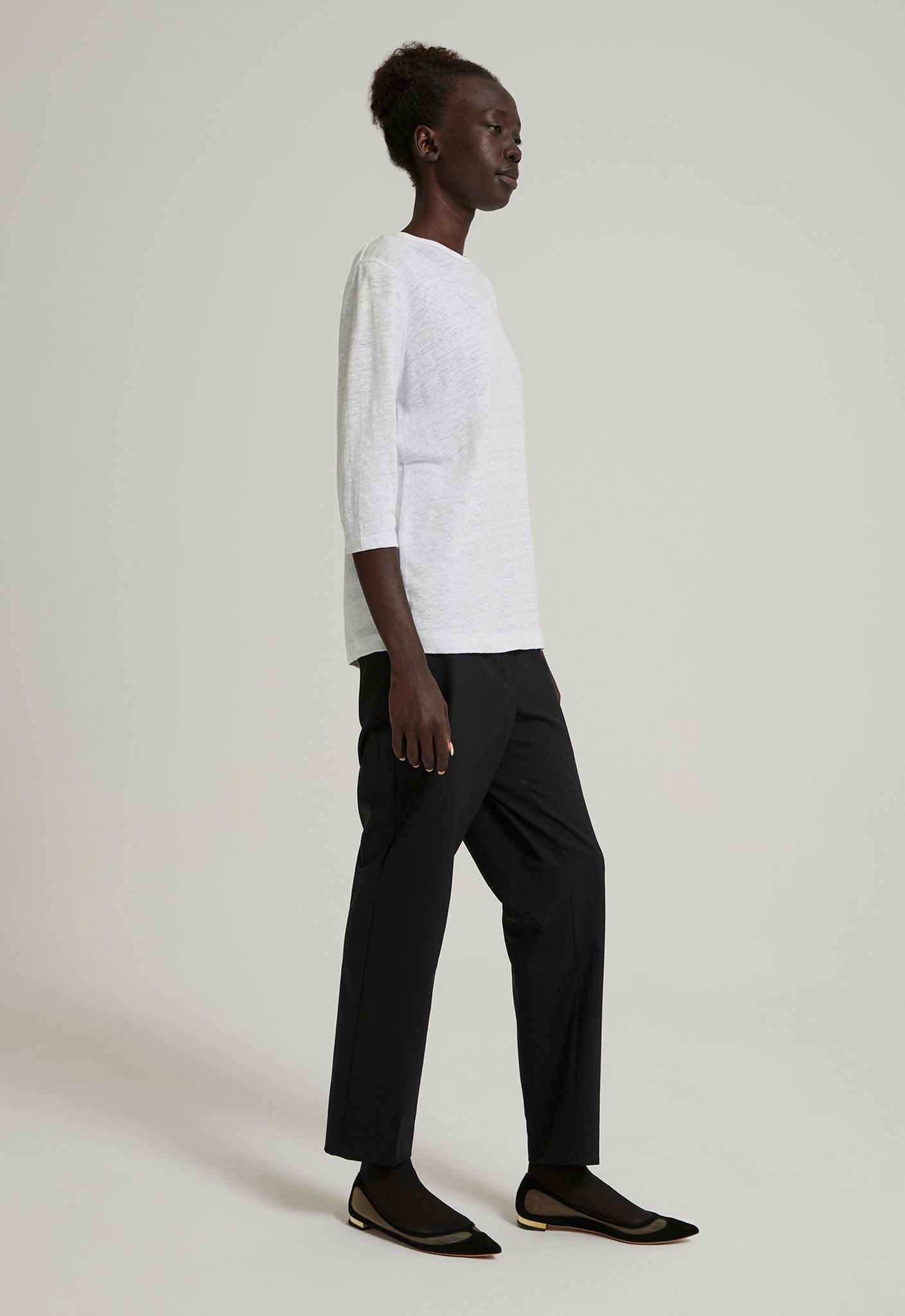 Endlessly versatile - This 3/4 sleeve t-shirt is cut for a flattering, relaxed fit. Made from slubbed mid weight linen jersey, this style has a ribbed neckline with a straight hemline. Whether worn alone or as a layering piece under your favourite knits, this piece will carry you through the seasons with ease.