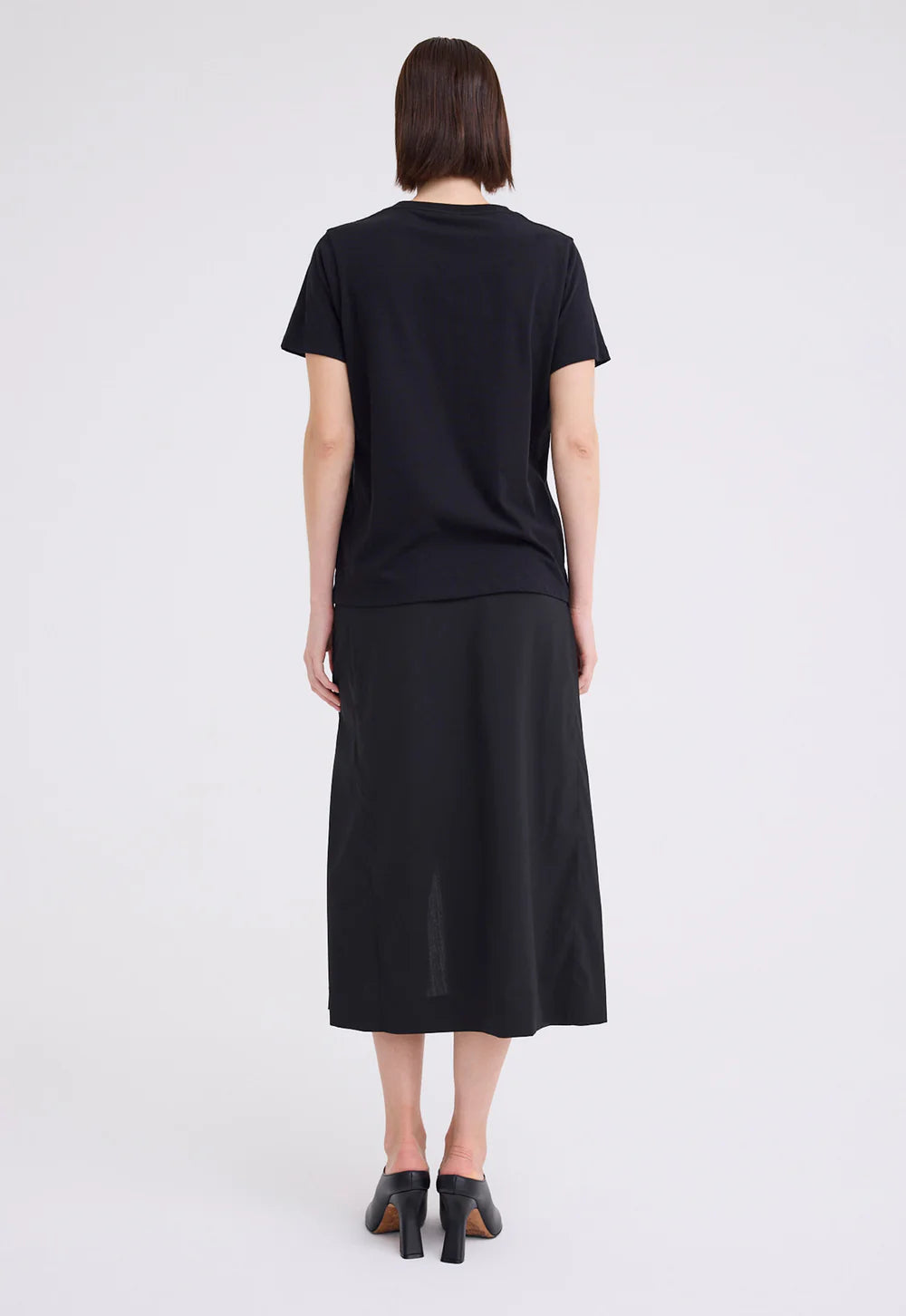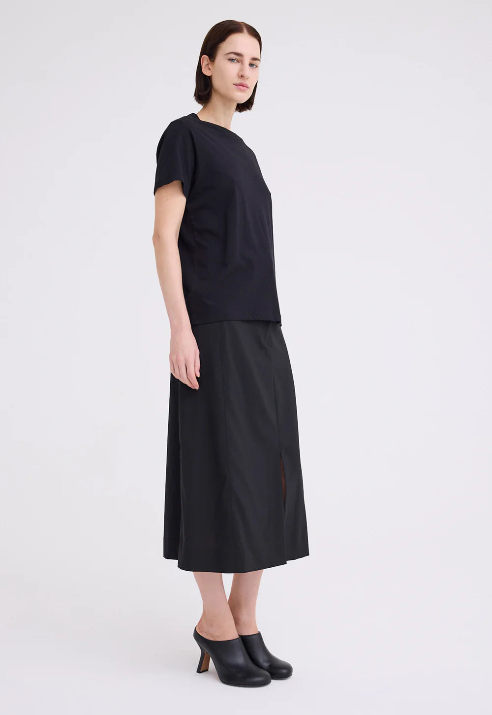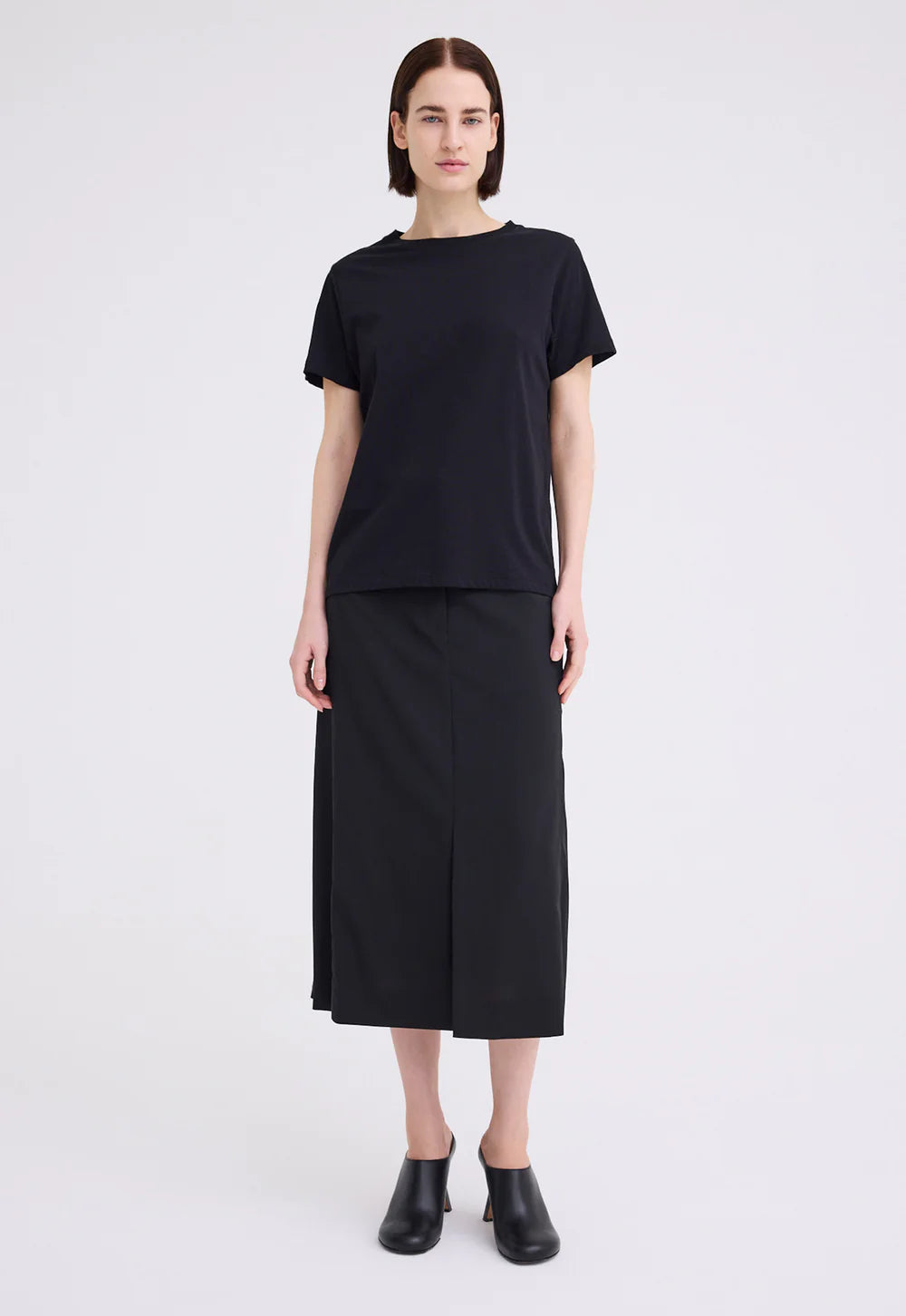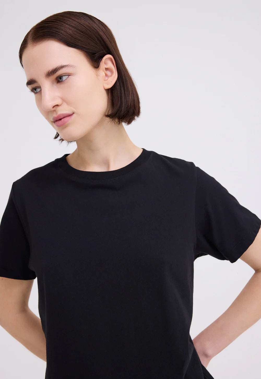 Made in USA from 100% organic cotton jersey. We have made our best selling cotton t-shirt sustainable – the cotton is grown with no synthetic pesticides and our colours are environmentally compliant. On top of that – it’s still the ideal t-shirt that is the perfect piece to build looks around. It has a relaxed fit that feels effortlessly cool and is free from extraneous detailing to ensure versatility. Wear with everything from cropped wide leg pants, to more tailored styles or your favourite off-duty pieces.