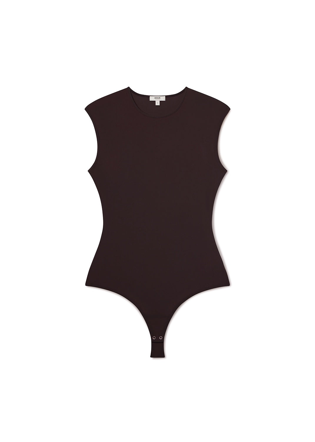 Agolde Aura Sleeveless Bodysuit in Chocolate.