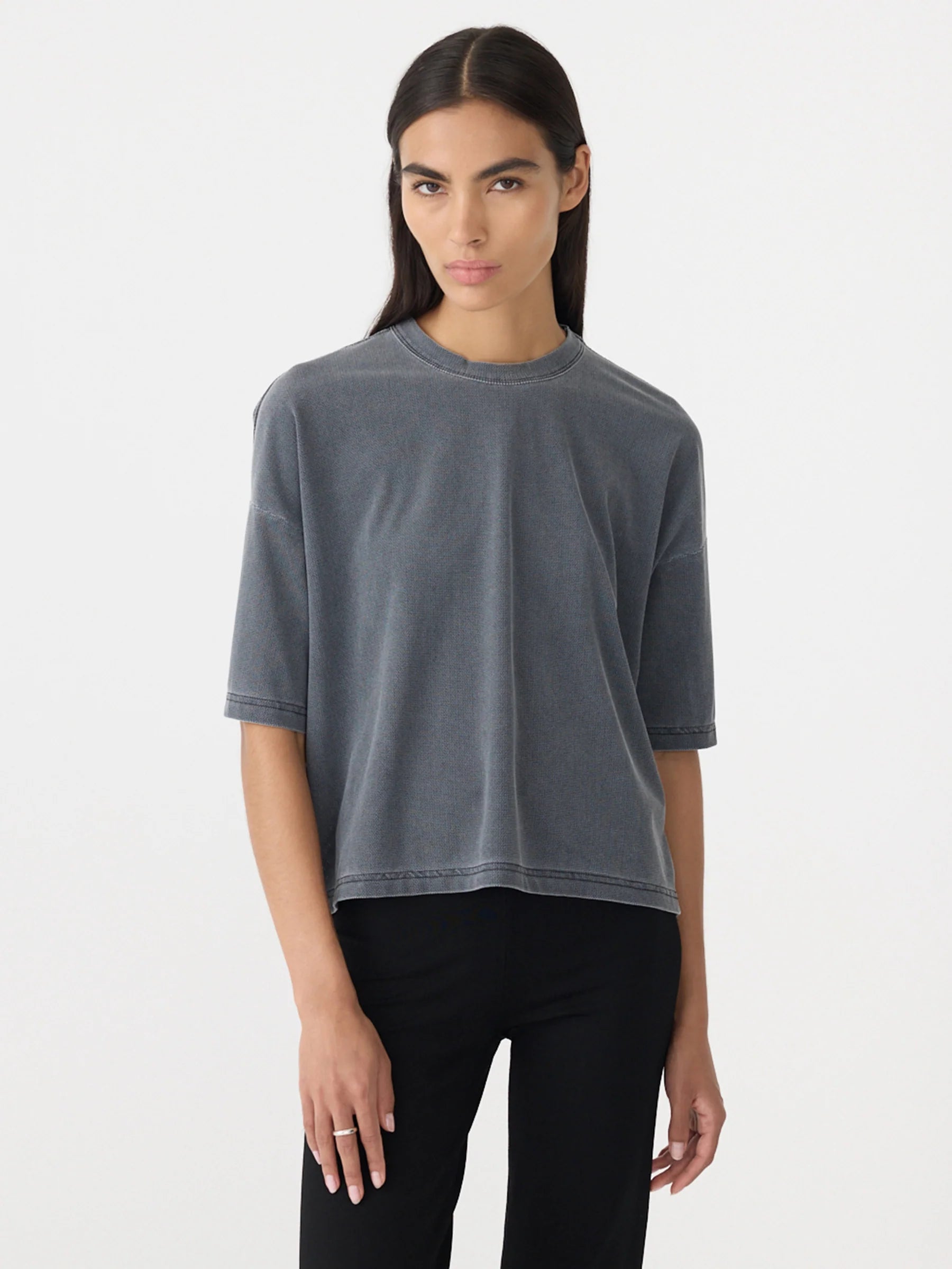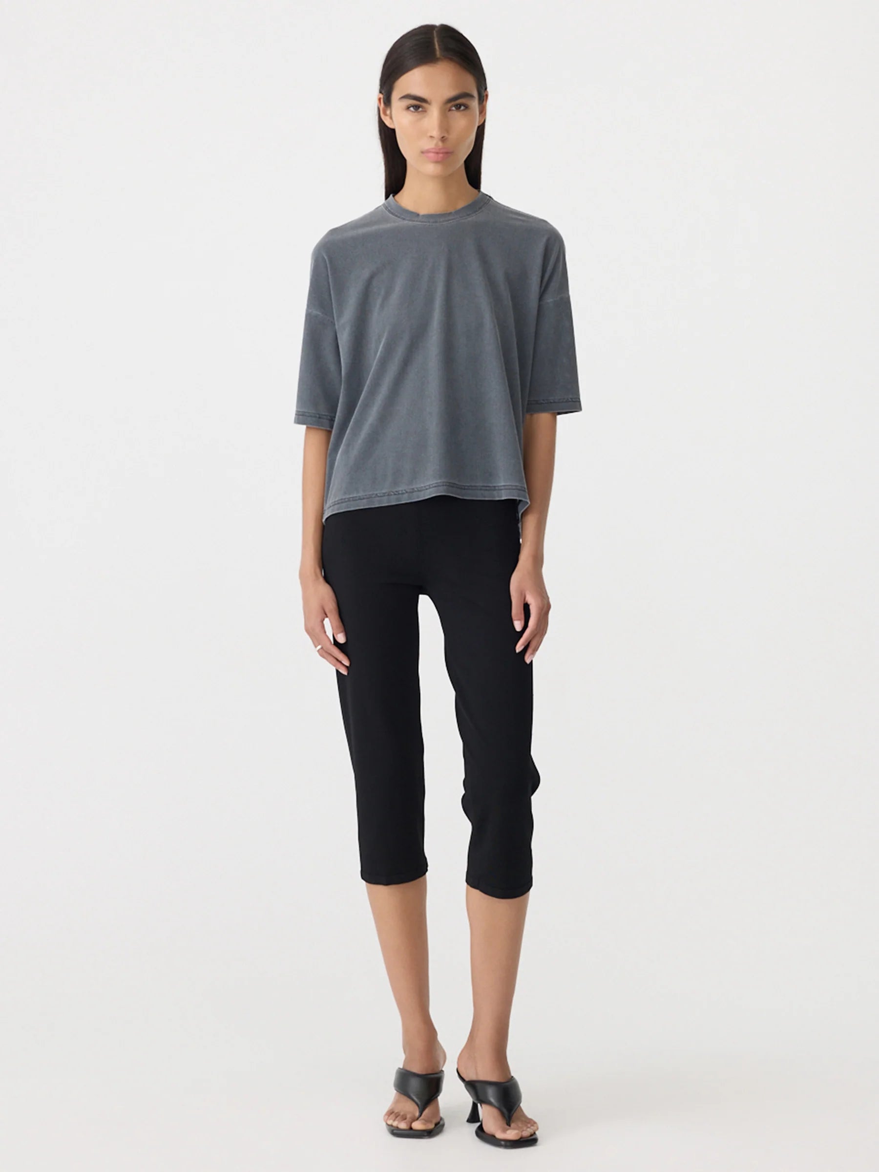 Bassike Mesh Boxy Seam Detail T-Shirt in Washed Black