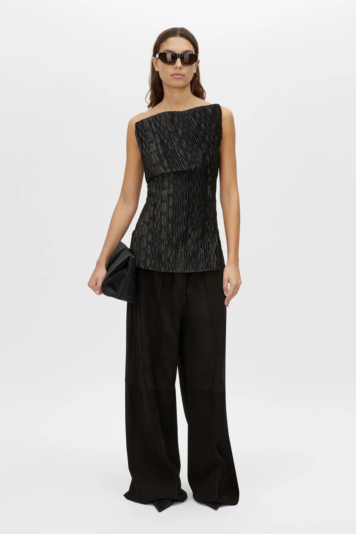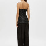 Camilla and Marc Elise Top in Black. CAMILLA AND MARC Elise strapless sculpted bodice top in black. Off the shoulder, fitted internal bodice, side seam hem splits. Centre back invisible zip closure.