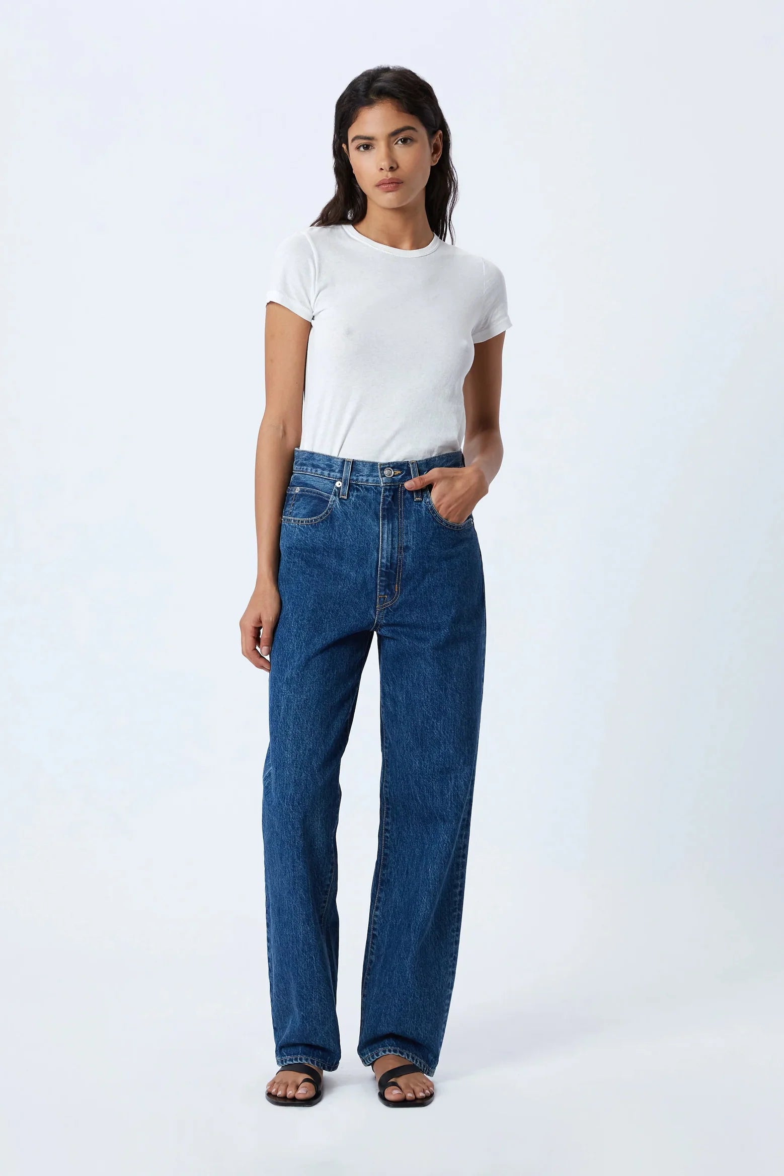 Koko offers a relaxed and refined silhouette. Crafted from pure cotton fabric and designed with a high rise and straight tapered leg.