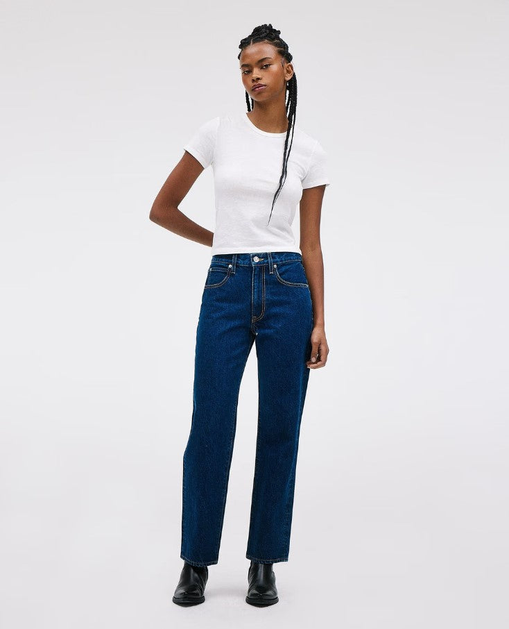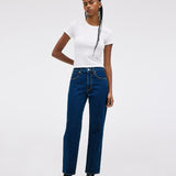 Slvrlake Sophie in Evermore. Sophie offers a mid rise waist and designed with a straight leg silhouette. Crafted from premium cotton fabric and signature SLVRLAKE hardware in brushed antique nickel.
