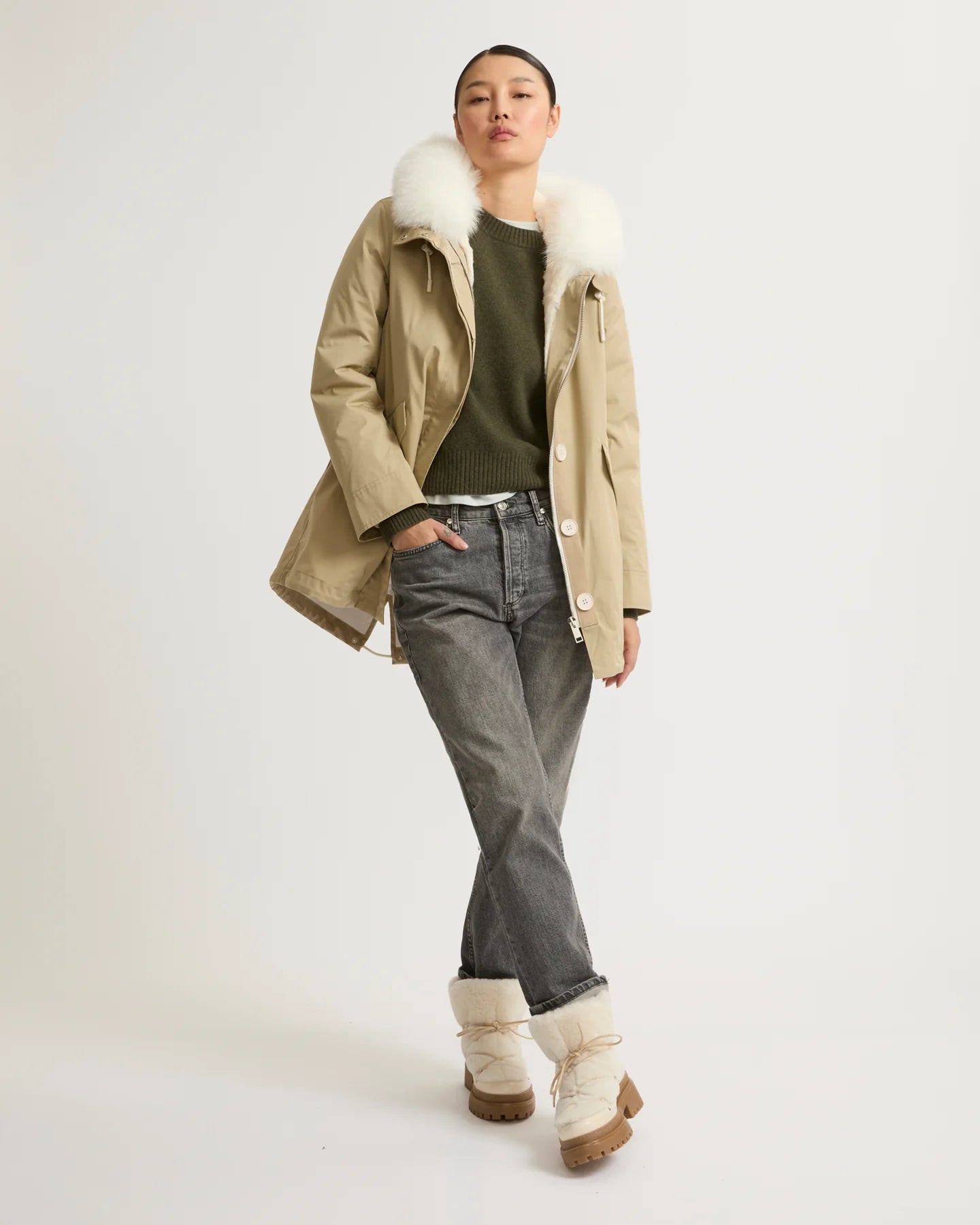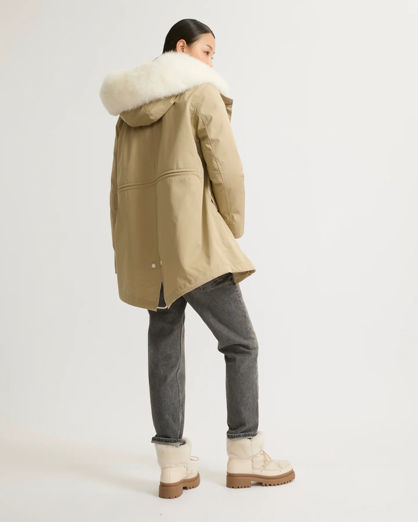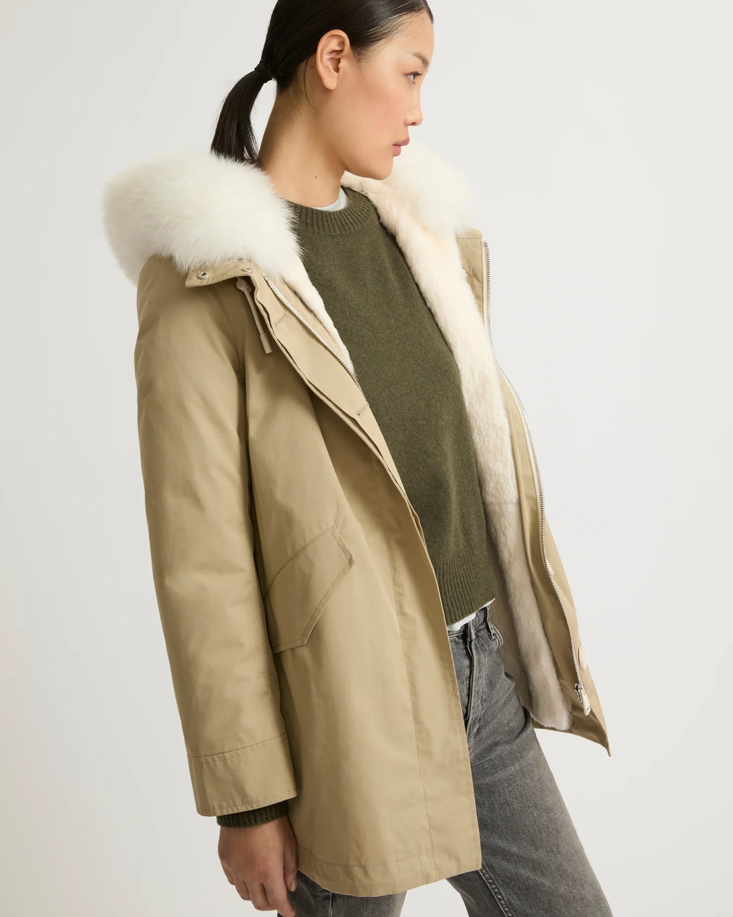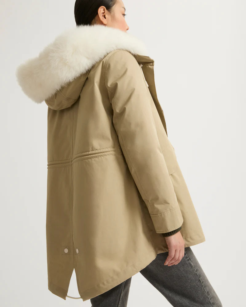 Yves Salomon Parka 72cm in Sable and Ivory