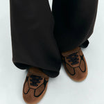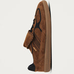Alohas Tb 490 Club Suede Leather Sneaker in Brown. From the makers of the Tb.490 comes the Tb.490 Club, featuring a long tongue that folds over the vamp, reminiscent of classic soccer shoes. These sneakers are crafted from brown suede traced with contrast dark brown trims. Designed in a low-top silhouette sitting on rubber soles, it’s complete with classic features, including exposed stitching and the logo embossed across the tongue and sides.