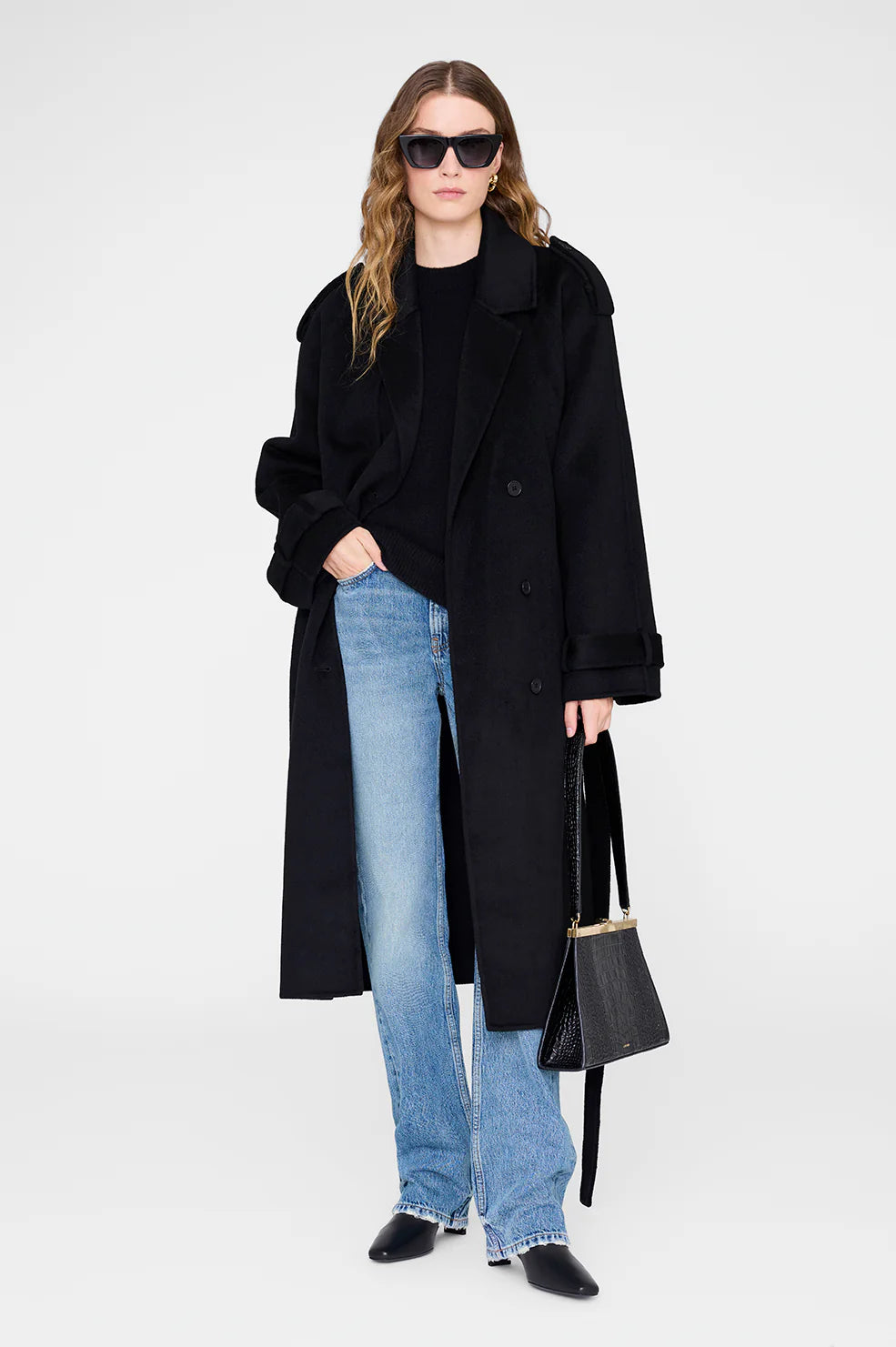 Anine Bing Lee Crew Sweater in Black. A soft crewneck sweater made from midweight 100% cashmere in black.