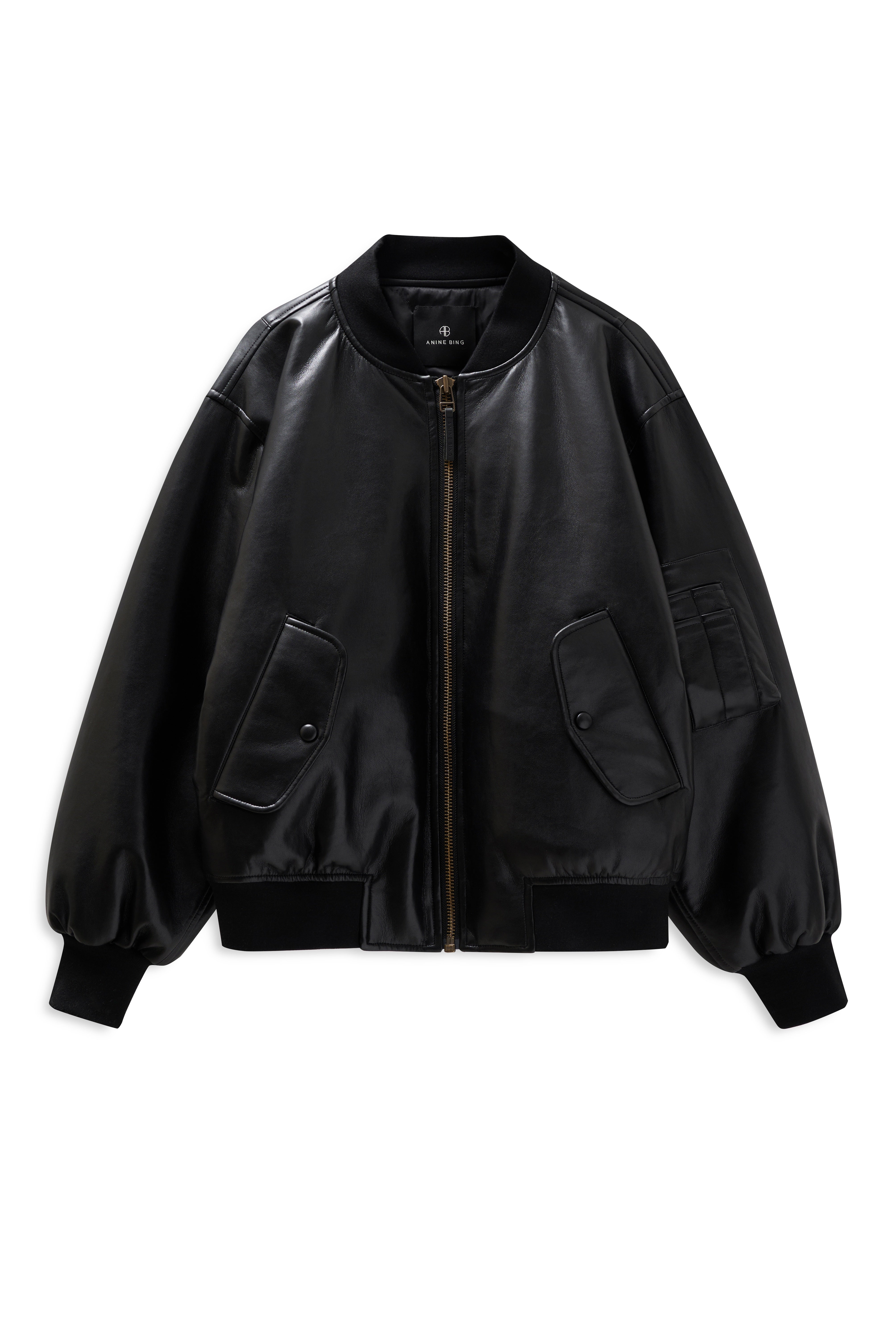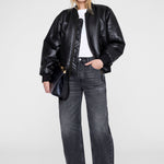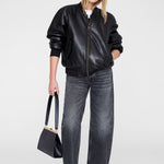 Anine Bing Leon Bomber in Black Recycled Leather.