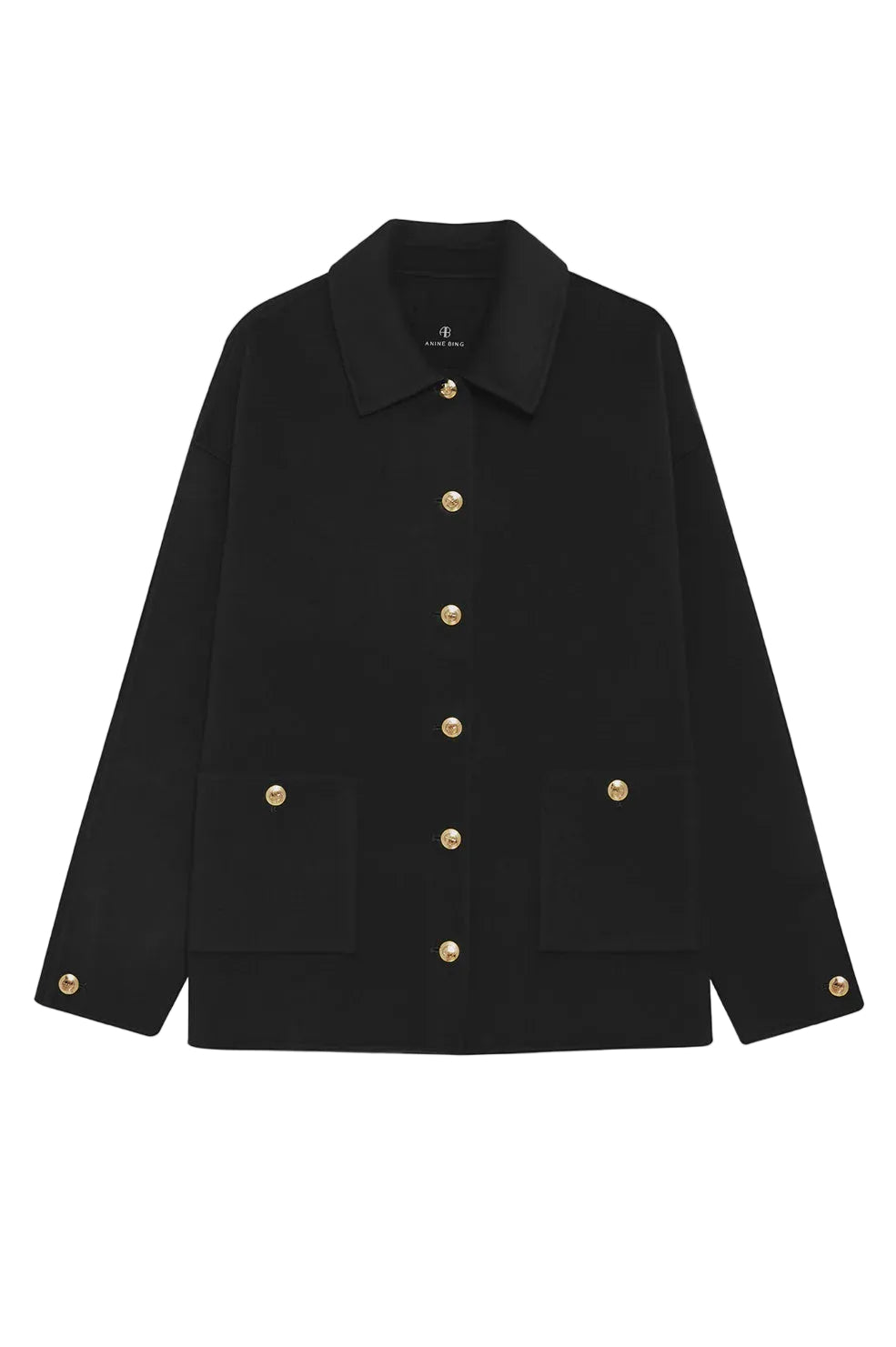 Anine Bing Luca Jacket in Black Cashmere Blend. The Luca Jacket is a modern utility-inspired style made from our signature double-faced wool-cashmere fabrication in black.