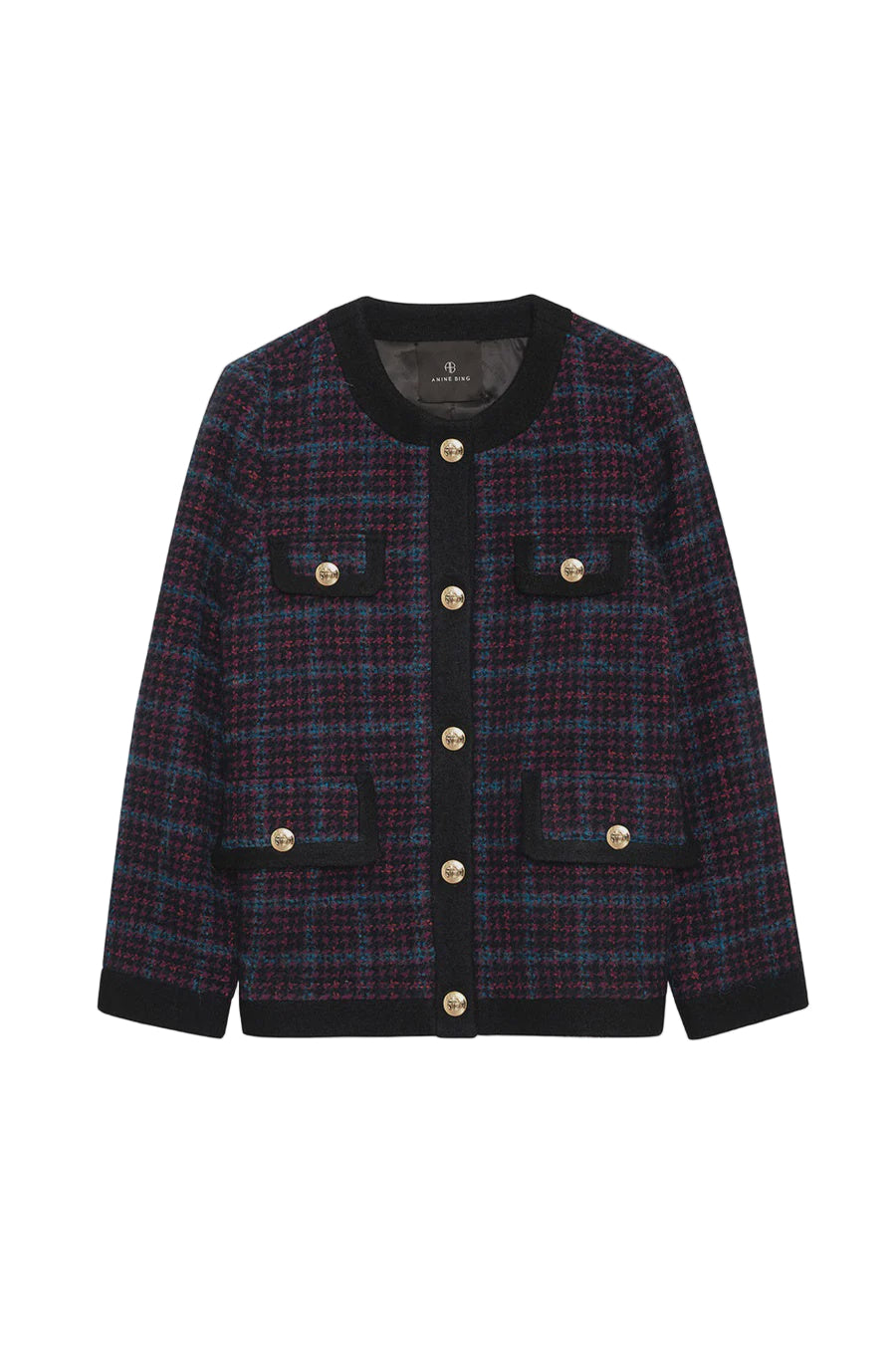 Anine Bing Lydia Jacket in Blue and Red Tweed.