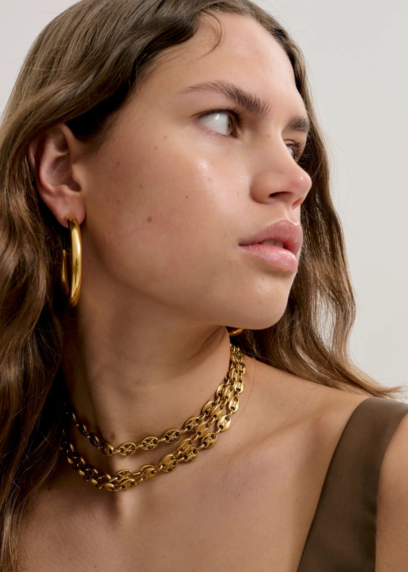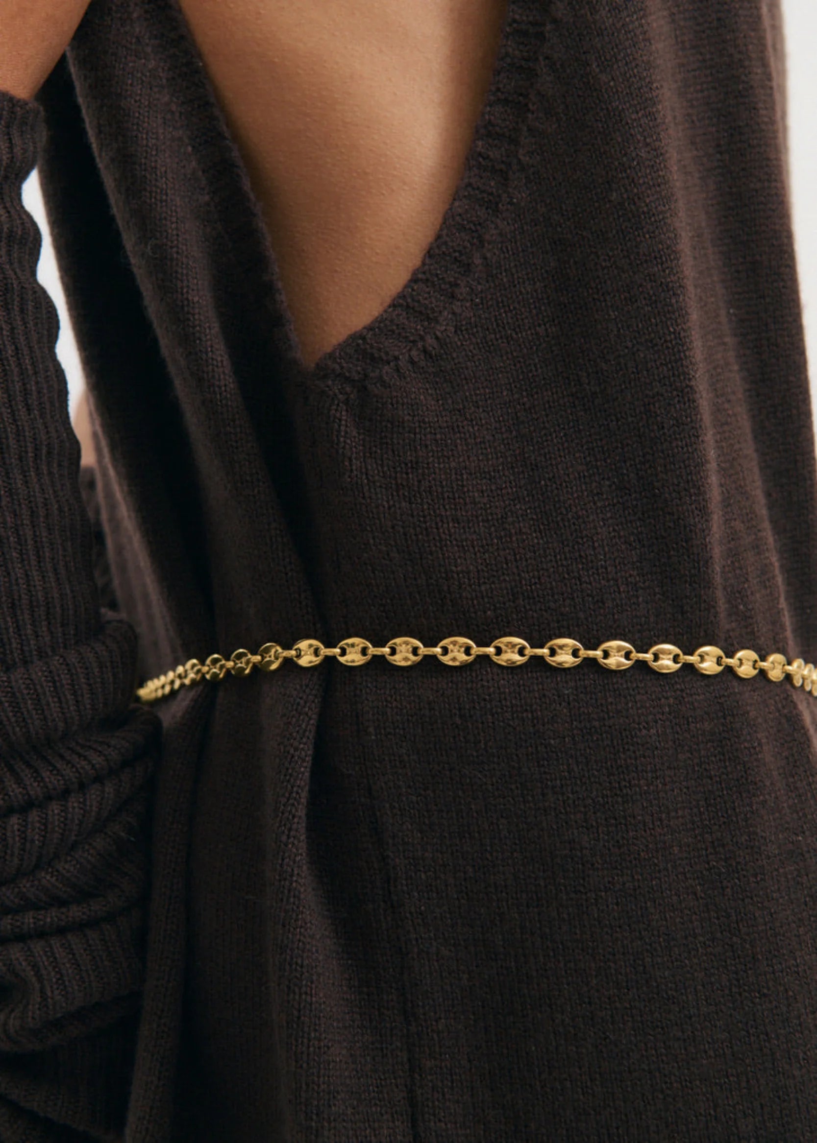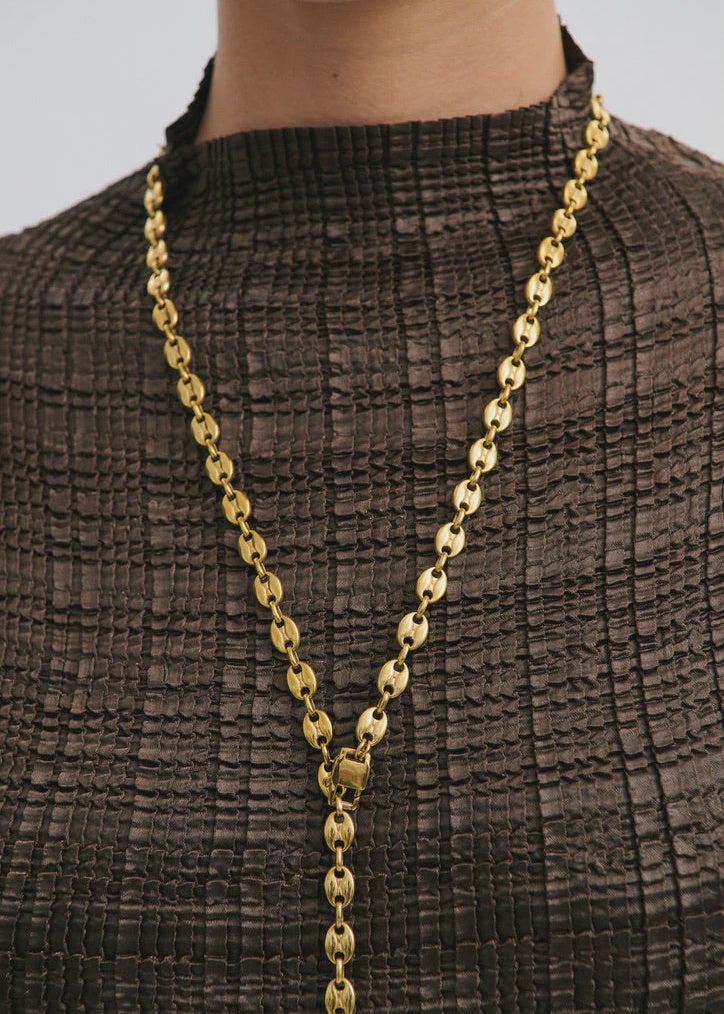 Anna Rossi Affogato Necklace in Gold. The Affogato Necklace is a timeless link chain that can be worn in a number of ways either as a necklace or even a belt. Featuring a user friendly latch opening.