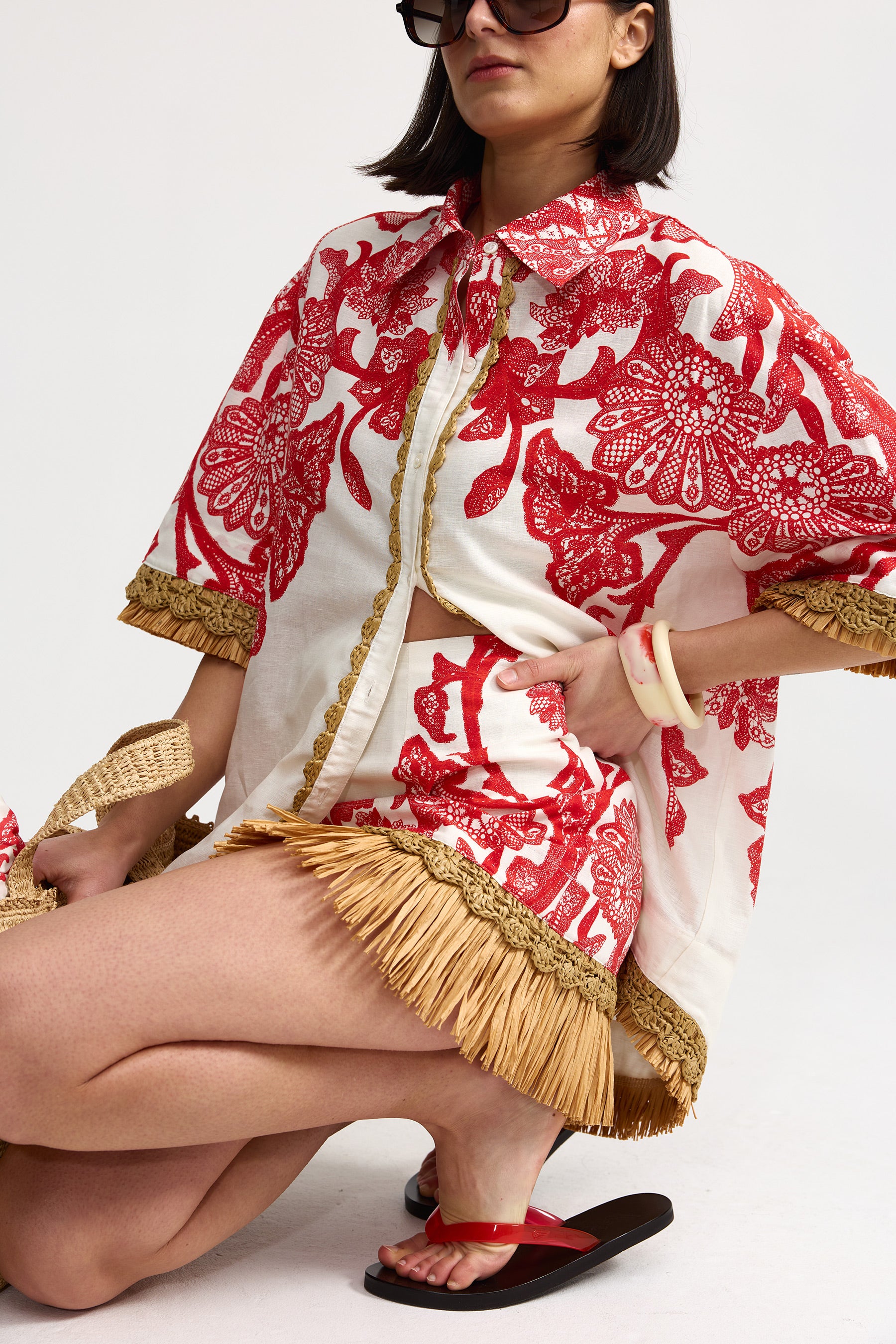 Fringe raffia hem detail