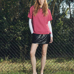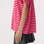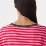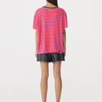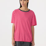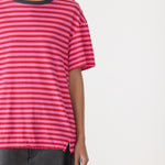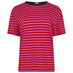 Bassike Stripe Boyfriend T-Shirt in Red and Pink and Washed Navy
