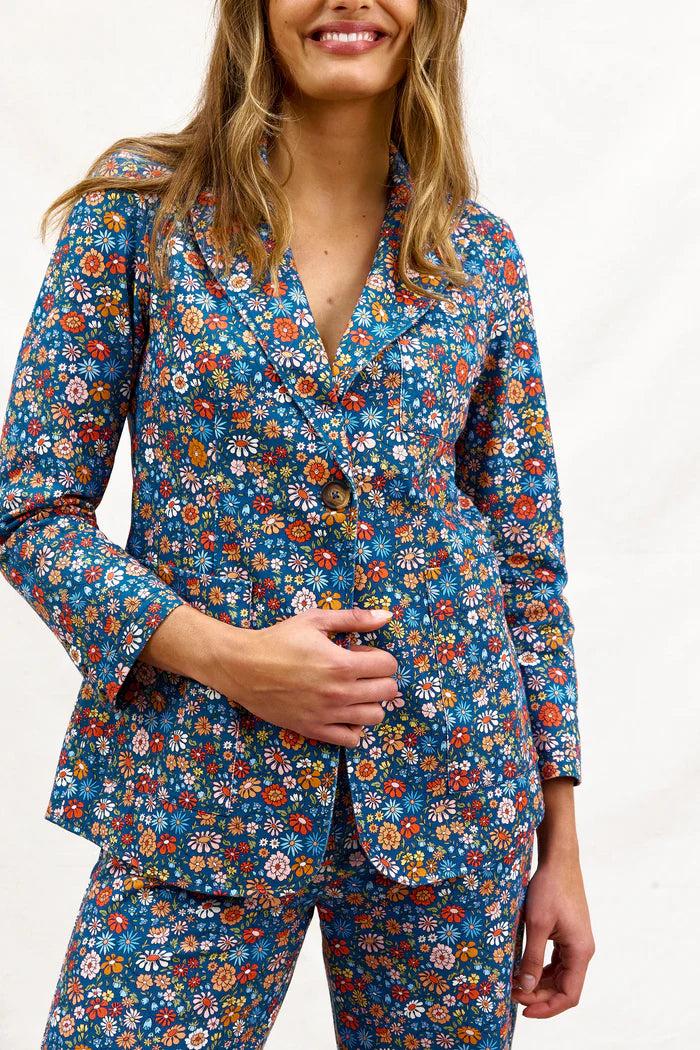 Binny Edelweiss Blazer. Suiting meets mountain wildflower meet modern mother of all things. Edelweiss is actually one of our favourite songs & a matching suit is one of our favourite lewks. Edelweiss is fun & feminine in the sweetest ditsy drill. We love a suit as much as we love a freshly groomed run on a sunny day with no crowds. Lined in contrast gingham. For less commitment wack it over (straight!) darker denim jeans & a crisp white untucked shirt & your new ballerina inspired sneaks. Sweet as. Just like you.