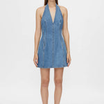 - Denim halter mini dress