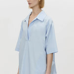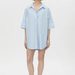 Camilla and Marc Cumulus Shirt Dress in Light Blue. The Cumulus Shirt Dress is crafted from cotton in a relaxed shift silhouette. This dress features inseam pockets and a straight collar with a crescent collar stand.