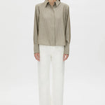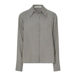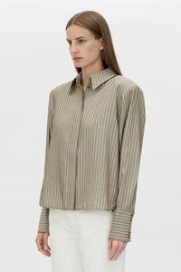 CAMILLA AND MARC Illias boxy stripe shirt with removable shoulder pads. Concealed button placket, box pleat at centre back. Rolled hem.