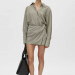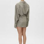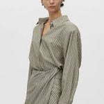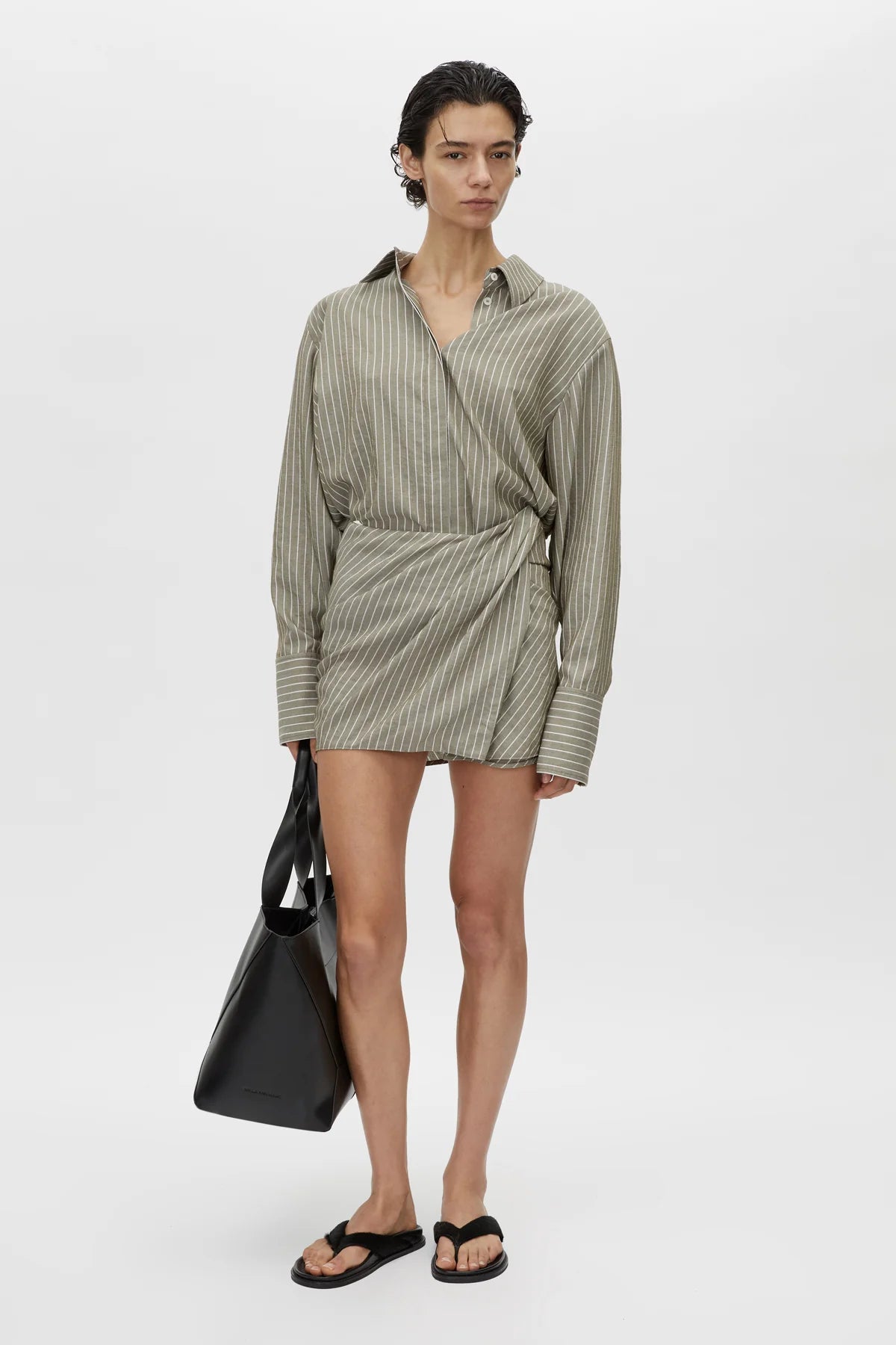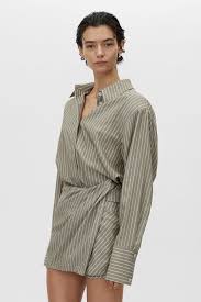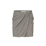 CAMILLA AND MARC Illias stripe mini skirt. Twist drape detail, split at centre front. Bound hem.