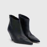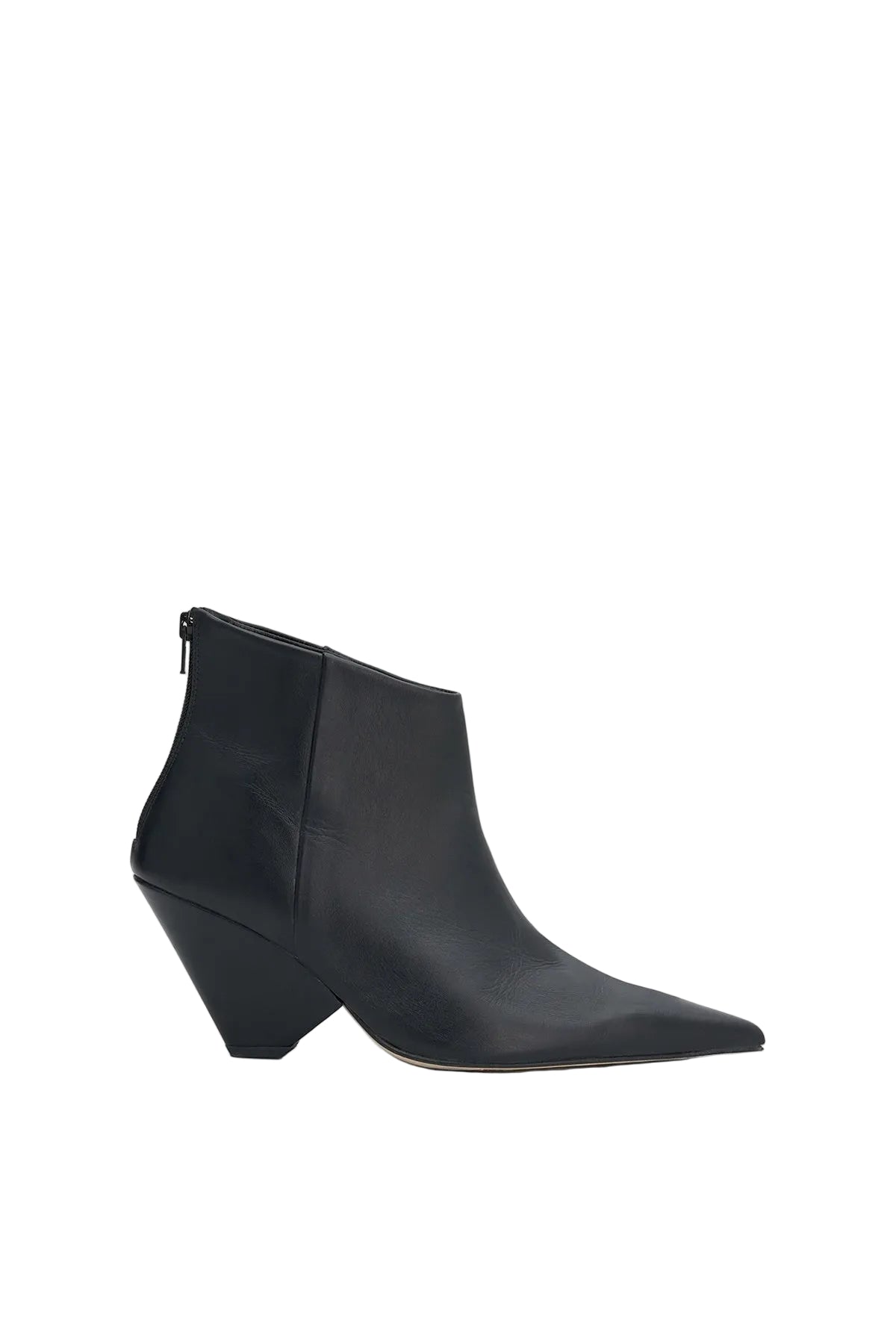 Camilla and Marc Rhys Boot in Black. CAMILLA AND MARC Rhys black pointed pump boot in Italian leather. Nubuck leather sole, angled 85mm heel. Made in Portugal.