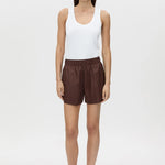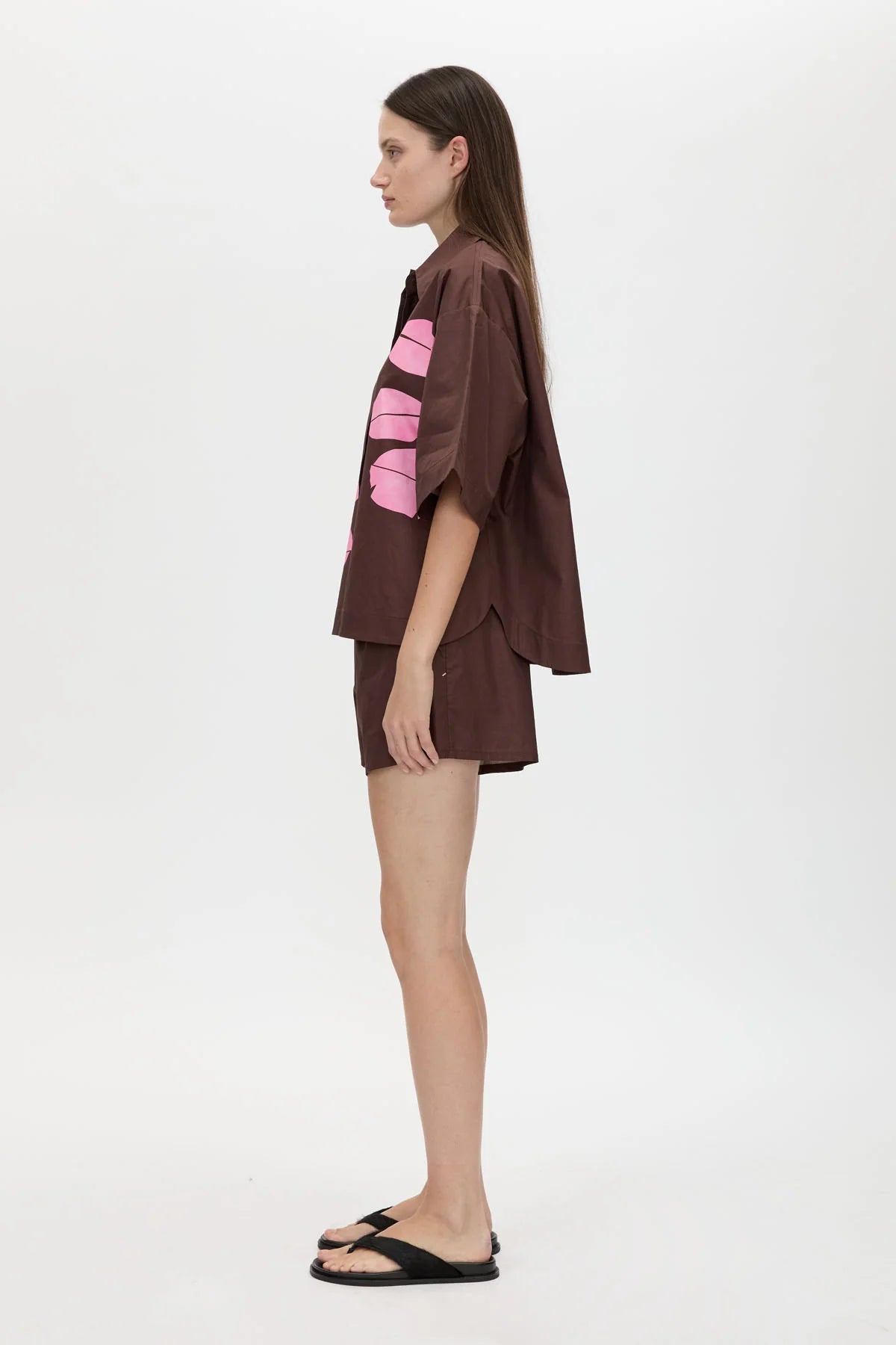 Camilla and Marc Sierra Short in Chocolate. The Sierra Short is crafted from Australian Cotton in a relaxed silhouette. This short features an elasticated encased waistband and is fully lined with slant pockets.