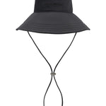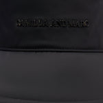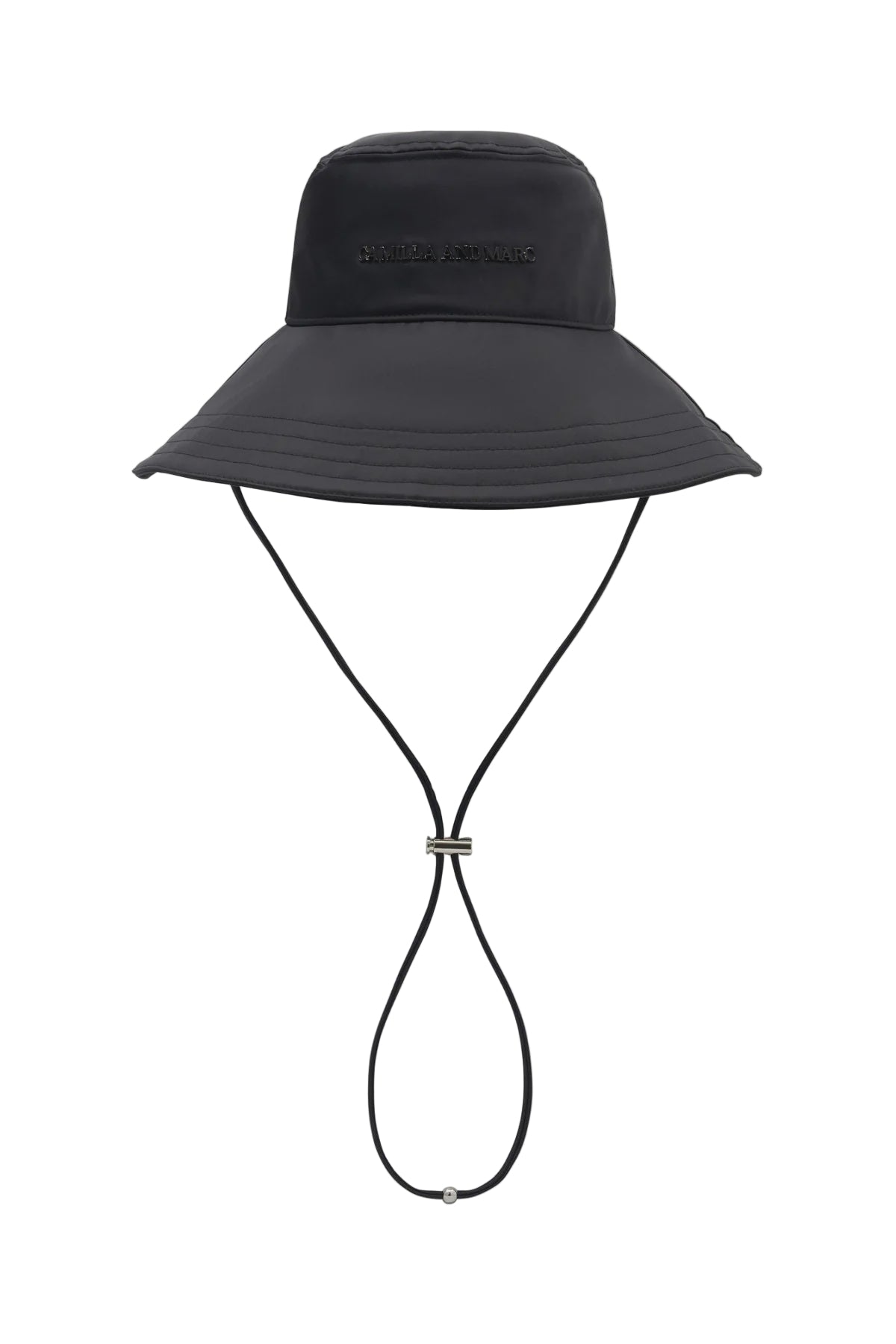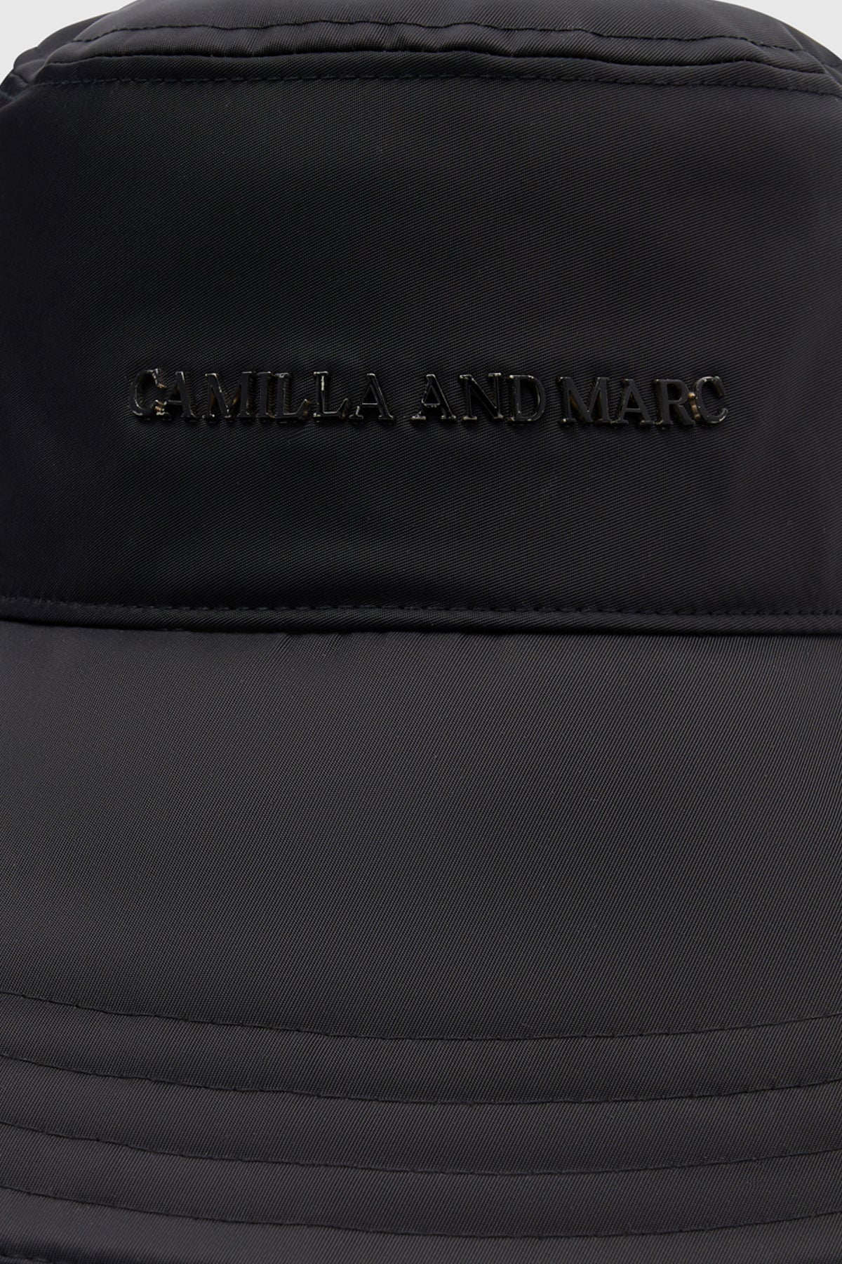 CAMILLA AND MARC Tadeo nylon wide brim hat with metal logo at centre front. Adjustable drawstring with silver hardware.