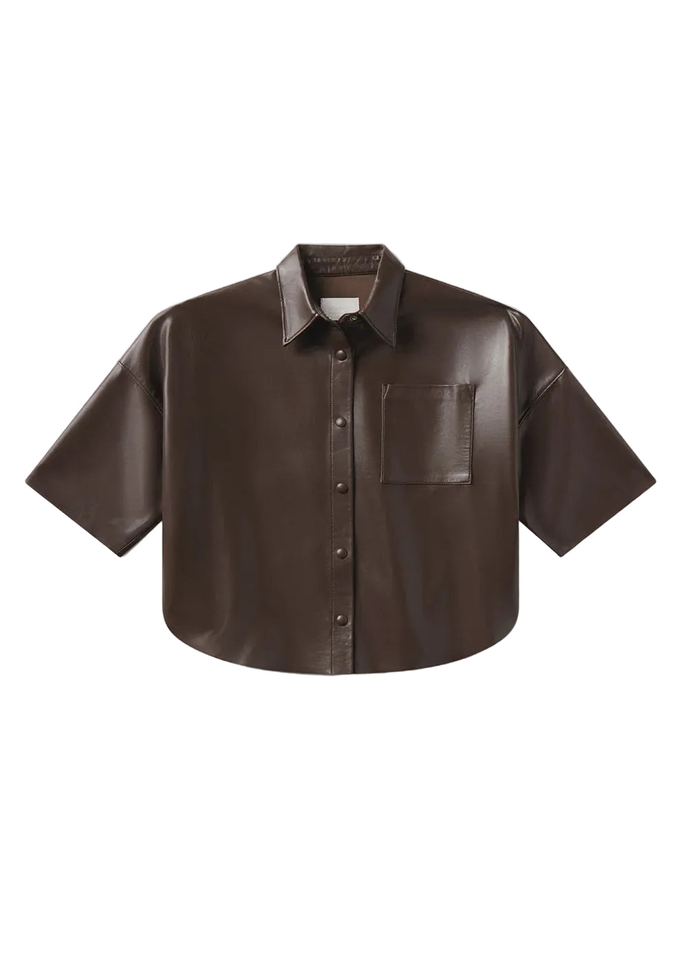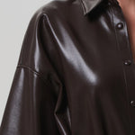 Looks Like: Chocolate brown vegan leather cropped button front short sleeve shirt
