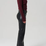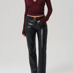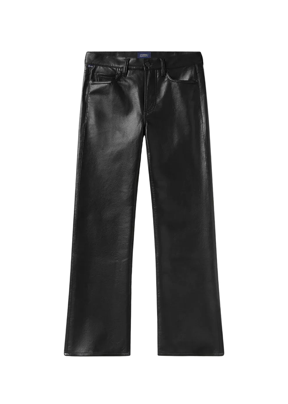 Citizens Of Humanity Genova Low Rise Boot in Leather in Black. The Genova Low Rise Boot is crafted from buttery recycled leather with slight stretch for ease. The true black bootcut silhouette sits low on the waist and falls to a full-length finish with a subtle flare at the hem. Perfect paired with fitted tops or tailored shirts for a polished, versatile look.